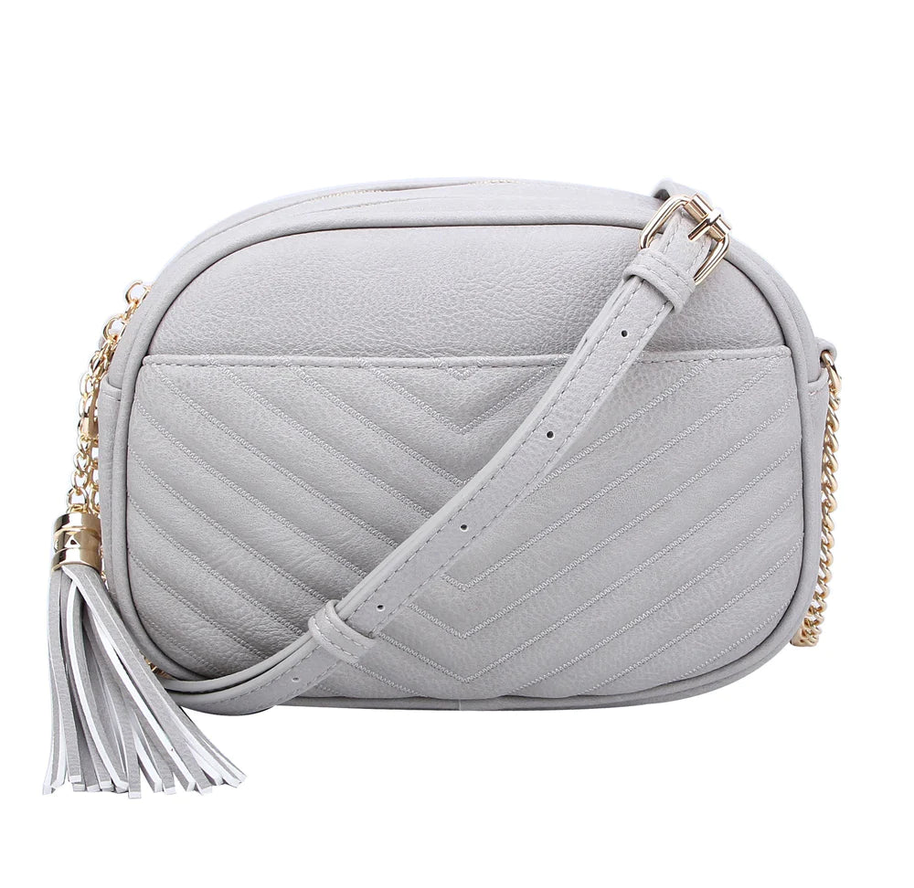 Our Tassel Crossbody Bag is designed to add sophisticated flair to any outfit. Crafted with a unique V-pattern stitch and double zippered closure compartments, it provides both ample storage and protection for all your essentials. An elegant tassel complements the bag's classic design, making it a luxurious addition to your wardrobe.