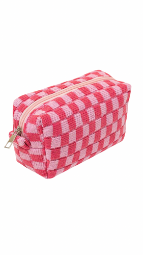 Pink Checkered Toiletry Bag