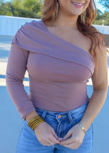 Janice One Shoulder Long Sleeve Bodysuit- Mauve