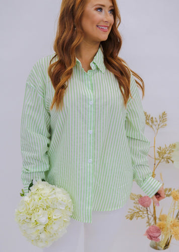 • Candy Oversized Stripe Button Up- Green