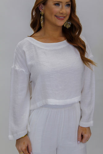 Flutter Away Cropped Blouse- White