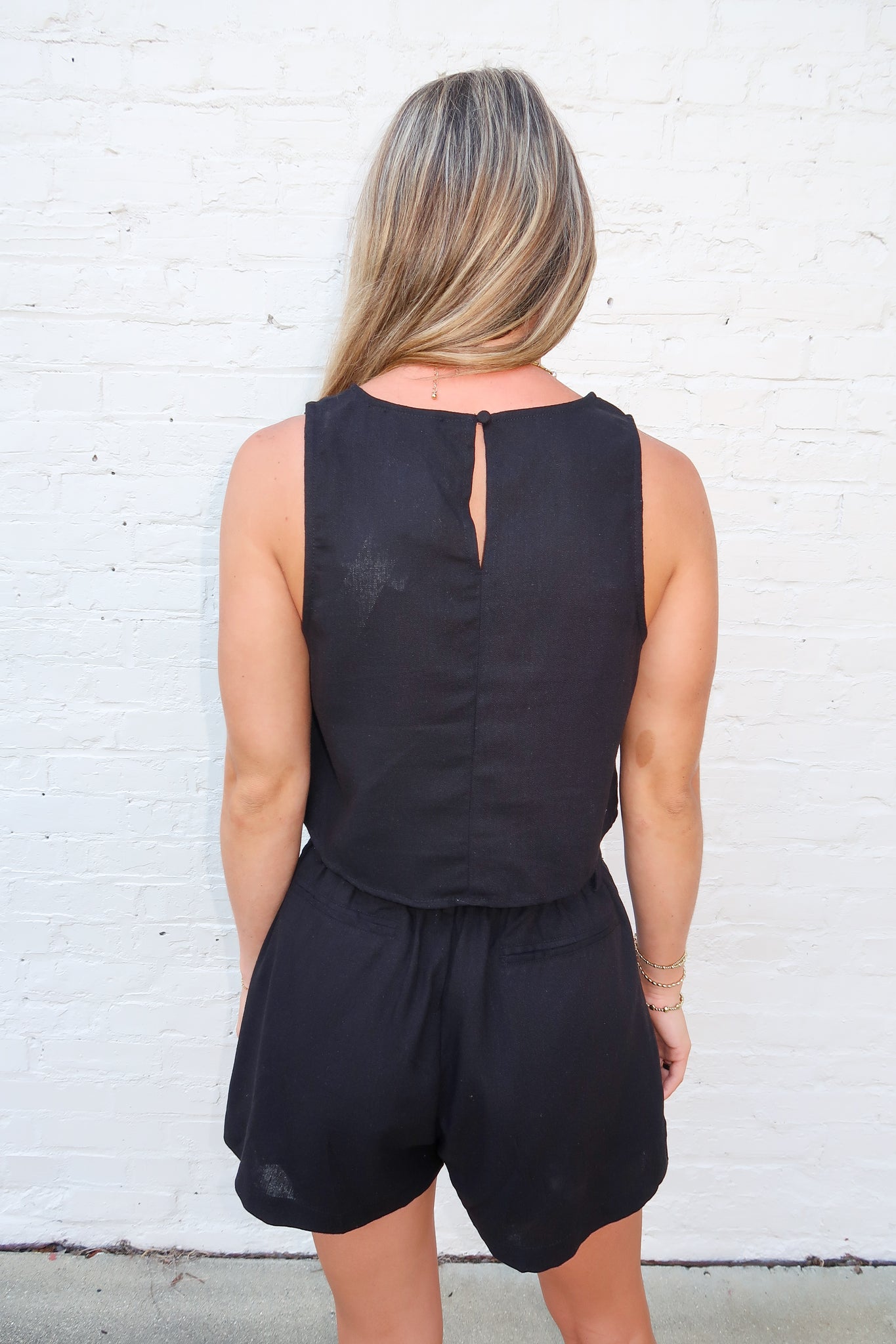 • Load image into Gallery viewer, Cooper Linen Pleat Short Set-Black