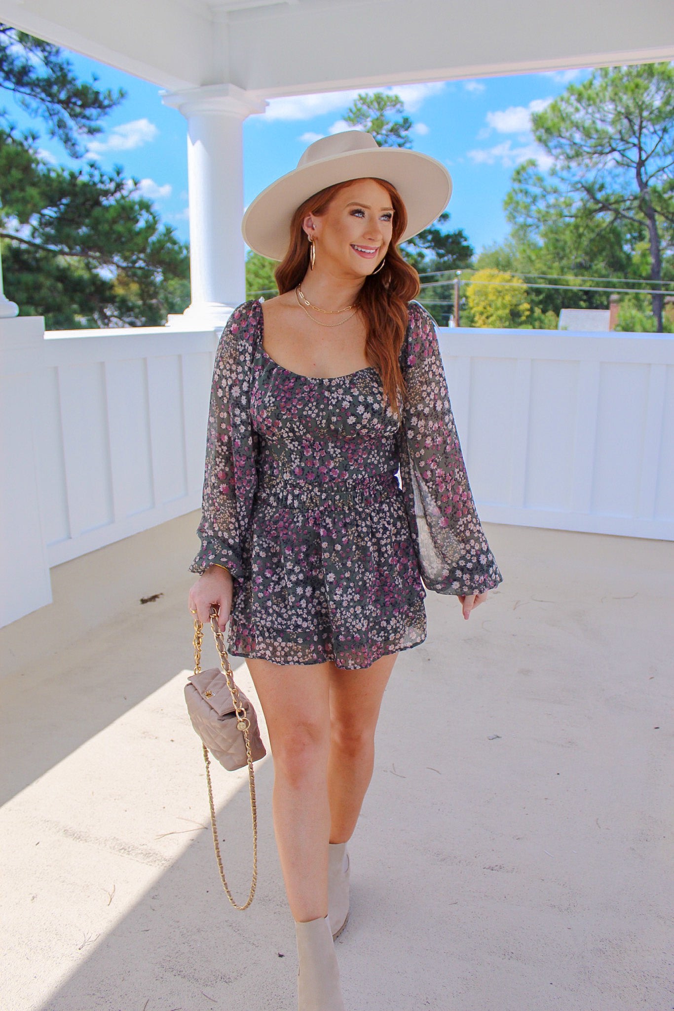 This ruffle mini skirt pairs with "Darby Floral Tie Crop Top- Olive". This mini skirt is one you can pair with all your fall tops!