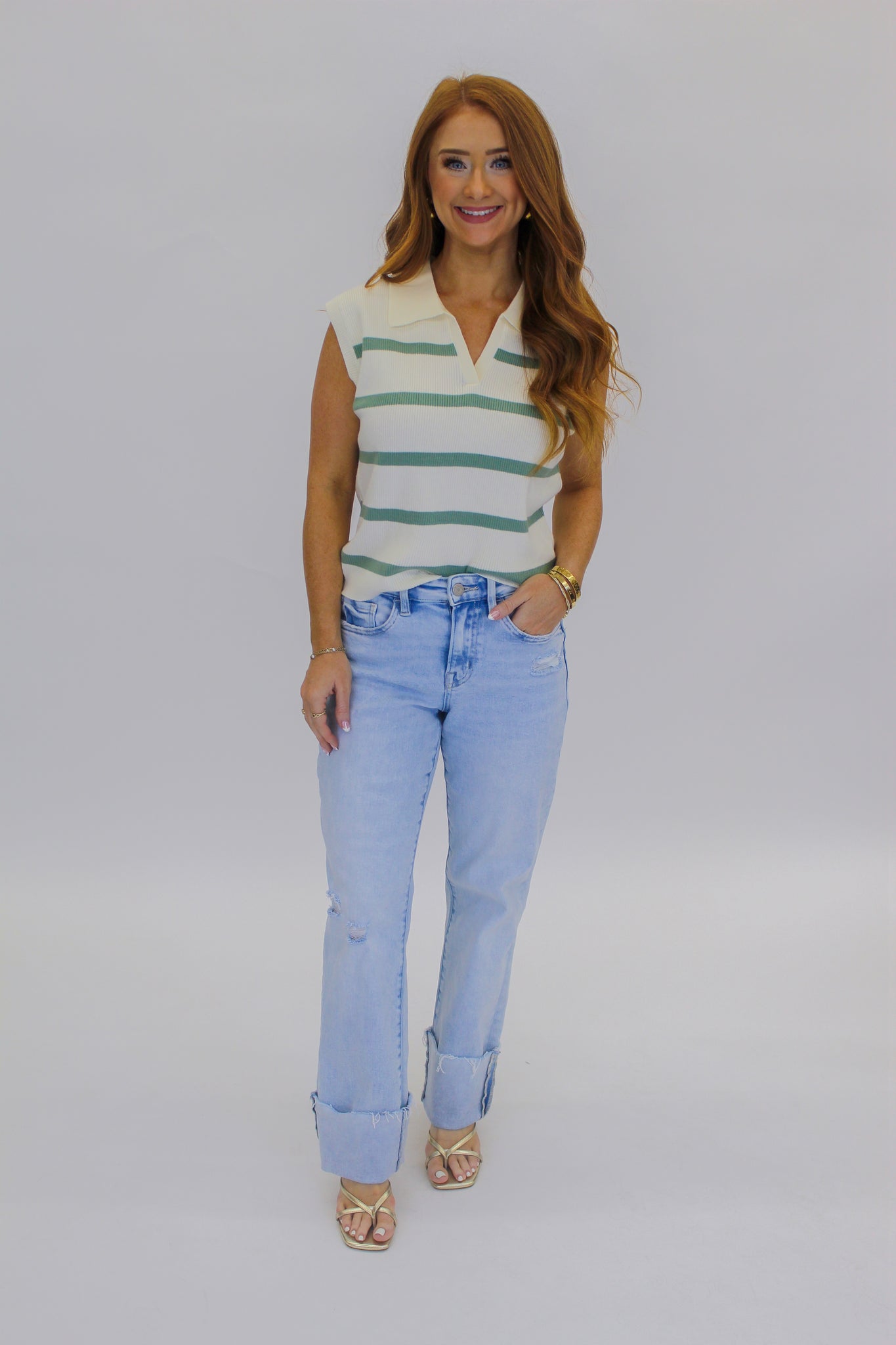 Introducing your new must-have for spring and summer fashion: our Folded Cuff High Rise Straight Jean. With its comfortable fit and versatile styling, these jeans will become your go-to choice for any occasion. Dress them up or down for a sophisticated and chic look that will elevate your wardrobe. Experience luxury and elegance with our premium denim.