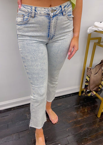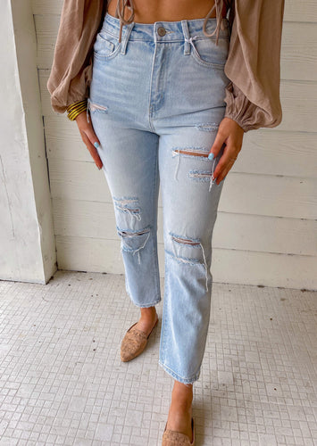 Beverley Super High Rise Distressed Crop Straight Jeans- Light Wash