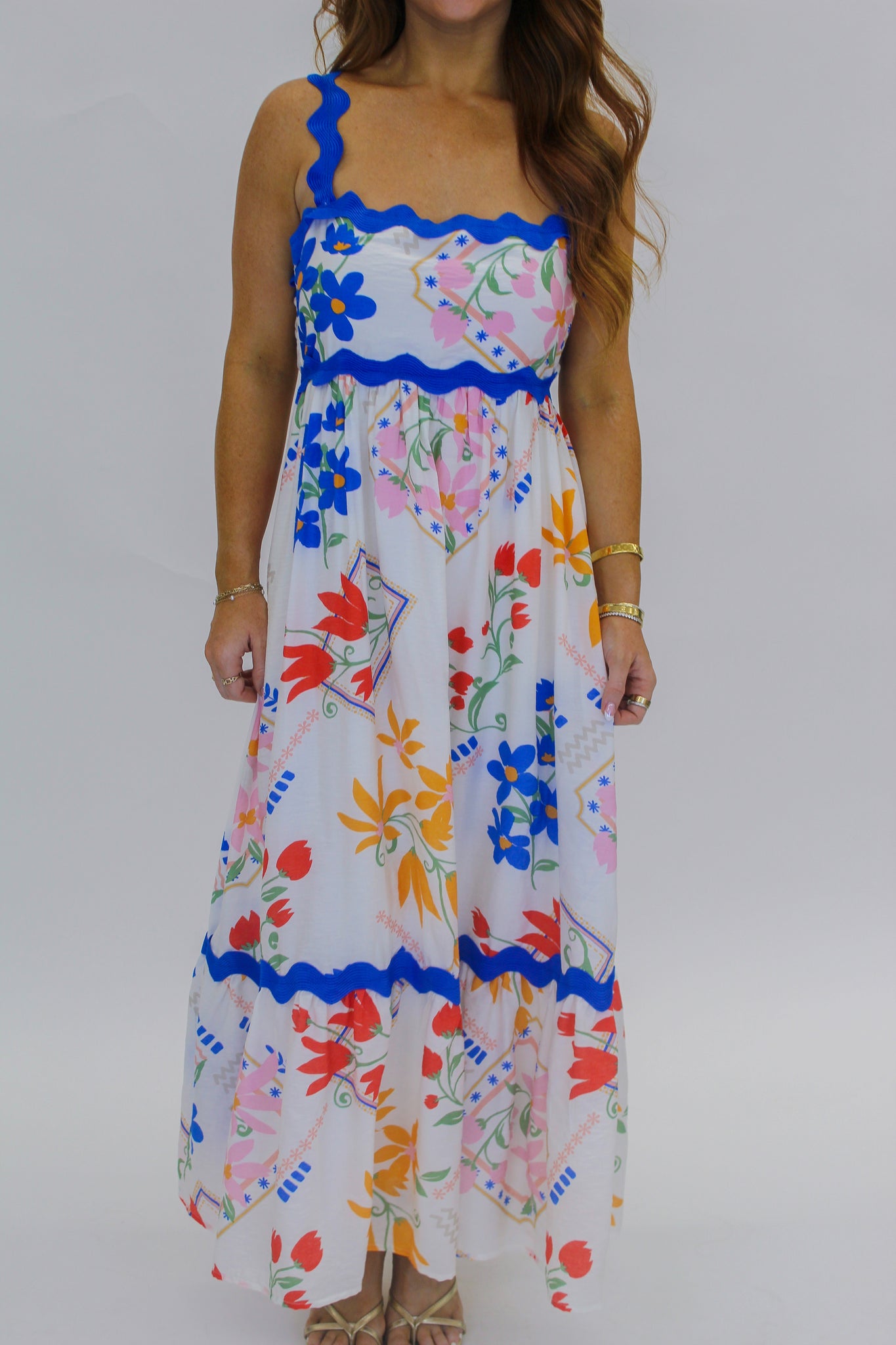 Escape to the Mediterranean in our Greece Floral Midi Dress. Perfect for your next vacation, this dress is both comfortable and stylish, making it the perfect outfit to wear while soaking up the sun. Pair with your favorite sandals or wedges for a chic and effortless look.