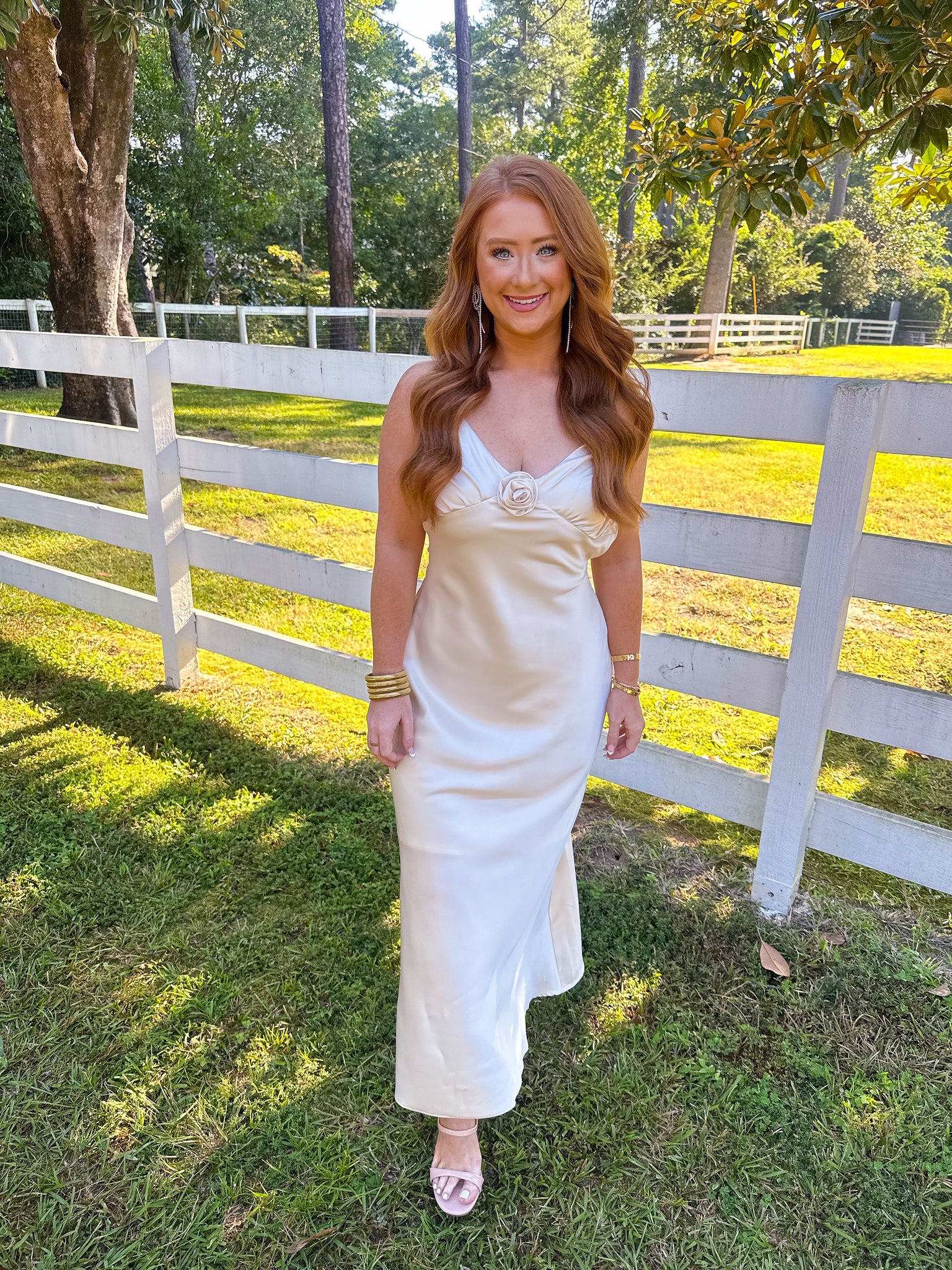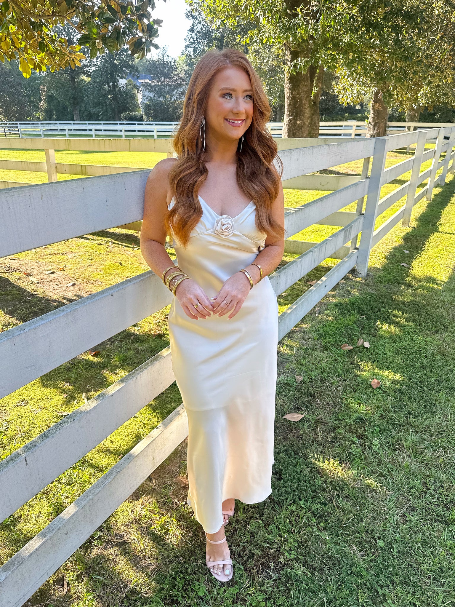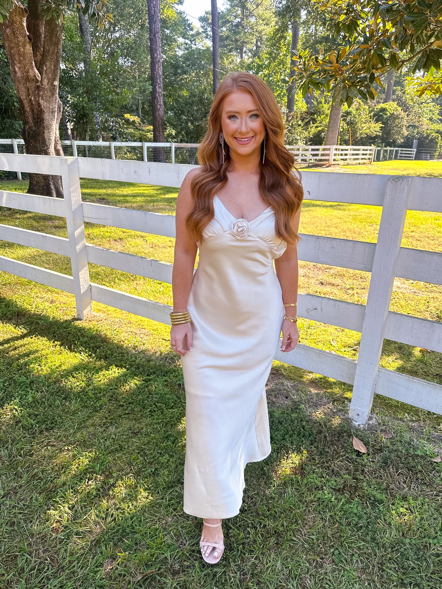 Indulge in the sophistication of our Rosette Satin Midi Dress. With its timeless design and delicate rosette detail, this dress exudes elegance. Perfect for weddings and special occasions, it's a must-have for any fashionable wardrobe. Elevate your style and make a statement with this luxurious piece.