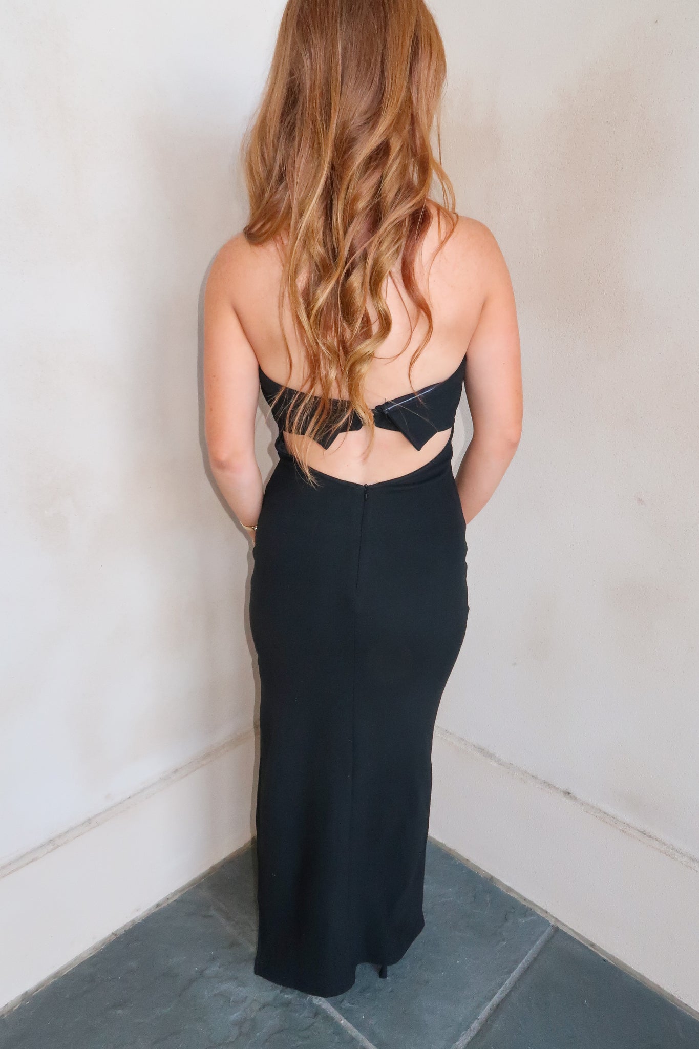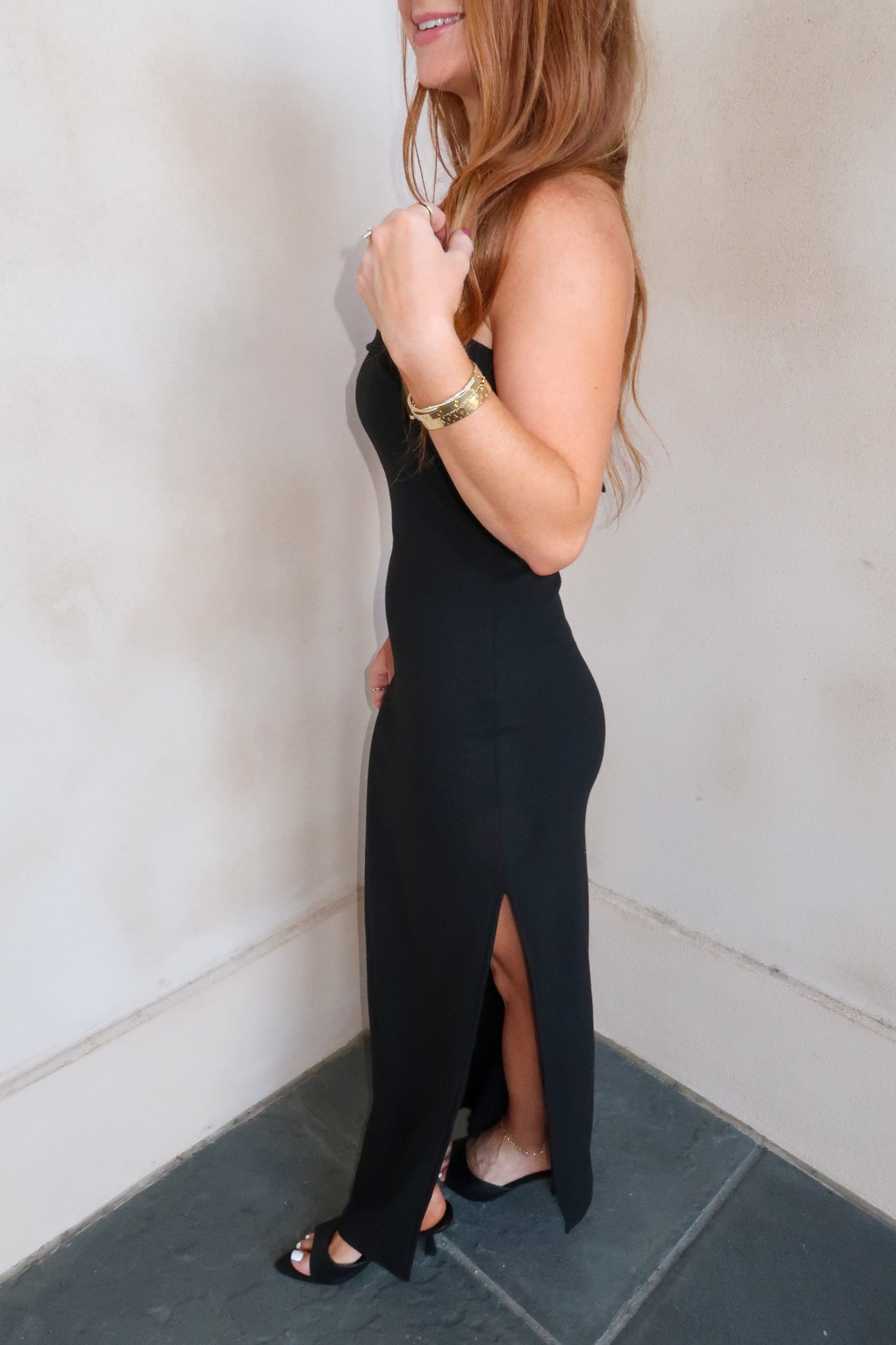 This sleek strapless midi dress offers timeless elegance with versatile styling options. Perfect for wedding guests or family photos, it can be effortlessly dressed up with heels or kept casual for daytime events. Its clean lines and flattering silhouette ensure a refined look for any occasion.