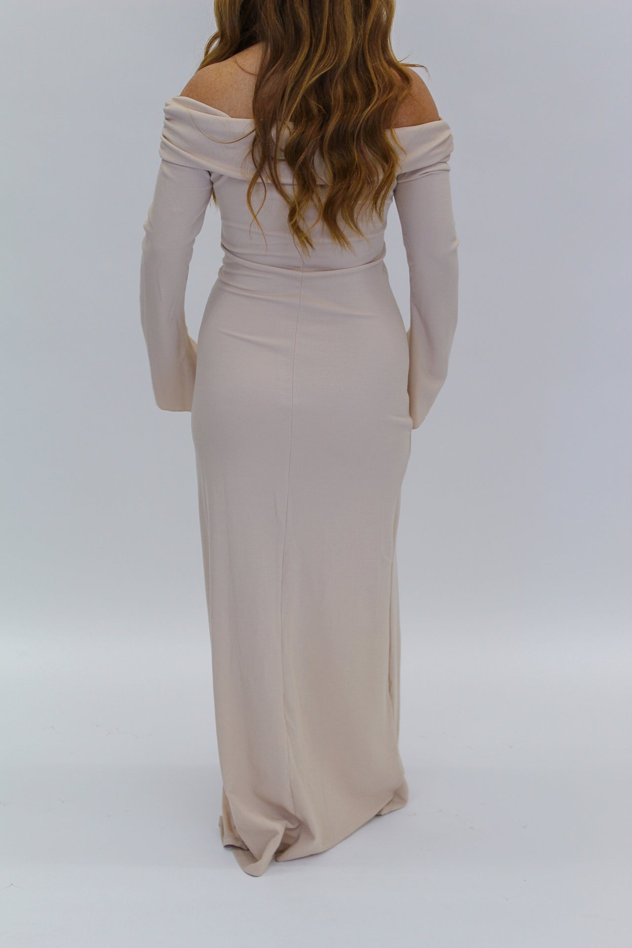 Be the center of attention in our Moment Off The Shoulder Knit Dress. This elegant and versatile dress is perfect for any special event, and its flattering off-the-shoulder design will turn all heads. Whether you're taking stunning photos or expecting, this dress is a must-have for your wardrobe.