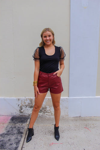 Spurs Up Faux Leather Shorts- Garnet
