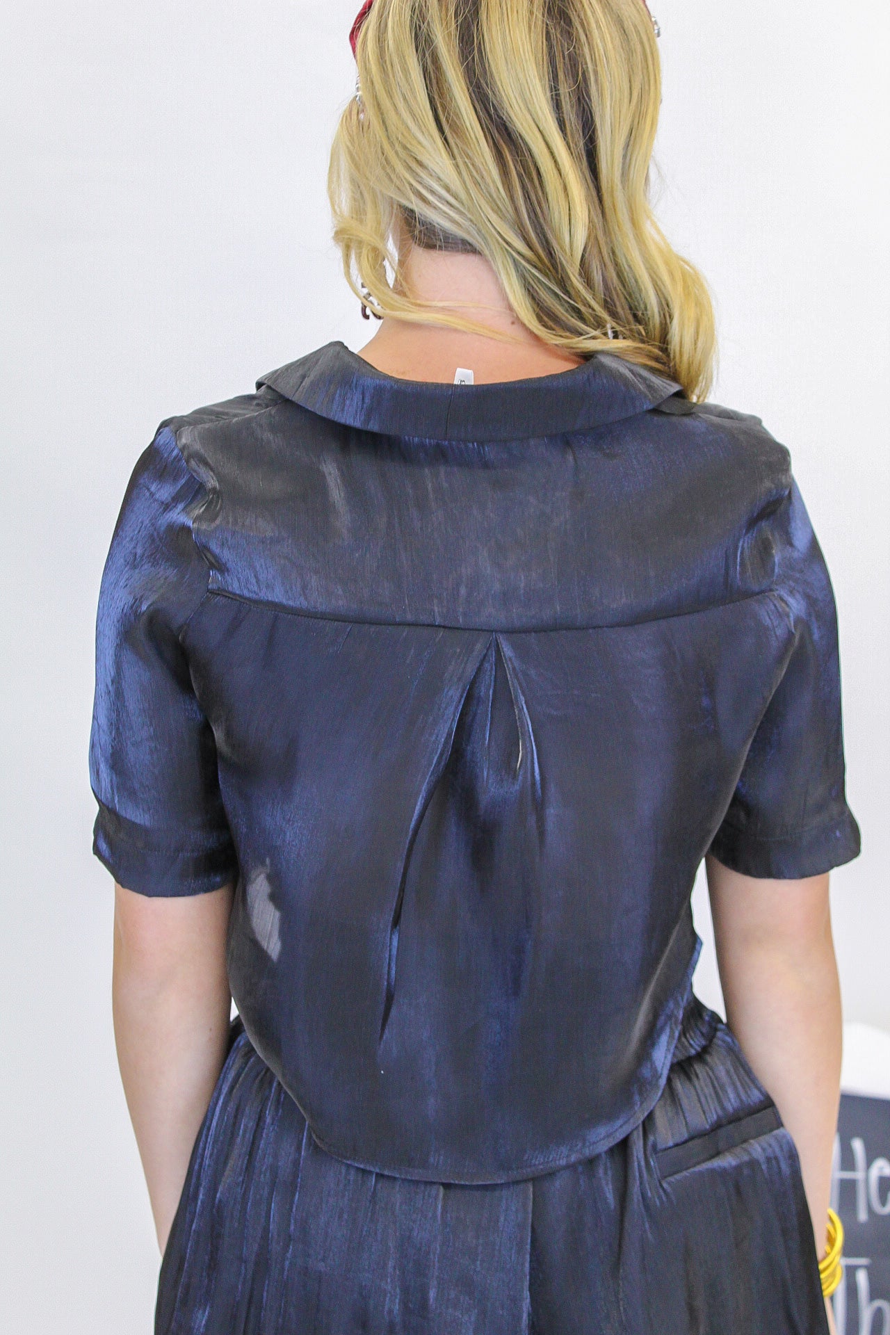 • Load image into Gallery viewer, Exceptional Cropped Button Down Shirt- Black