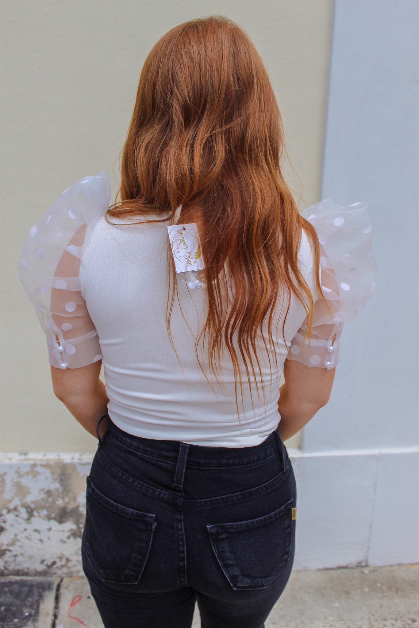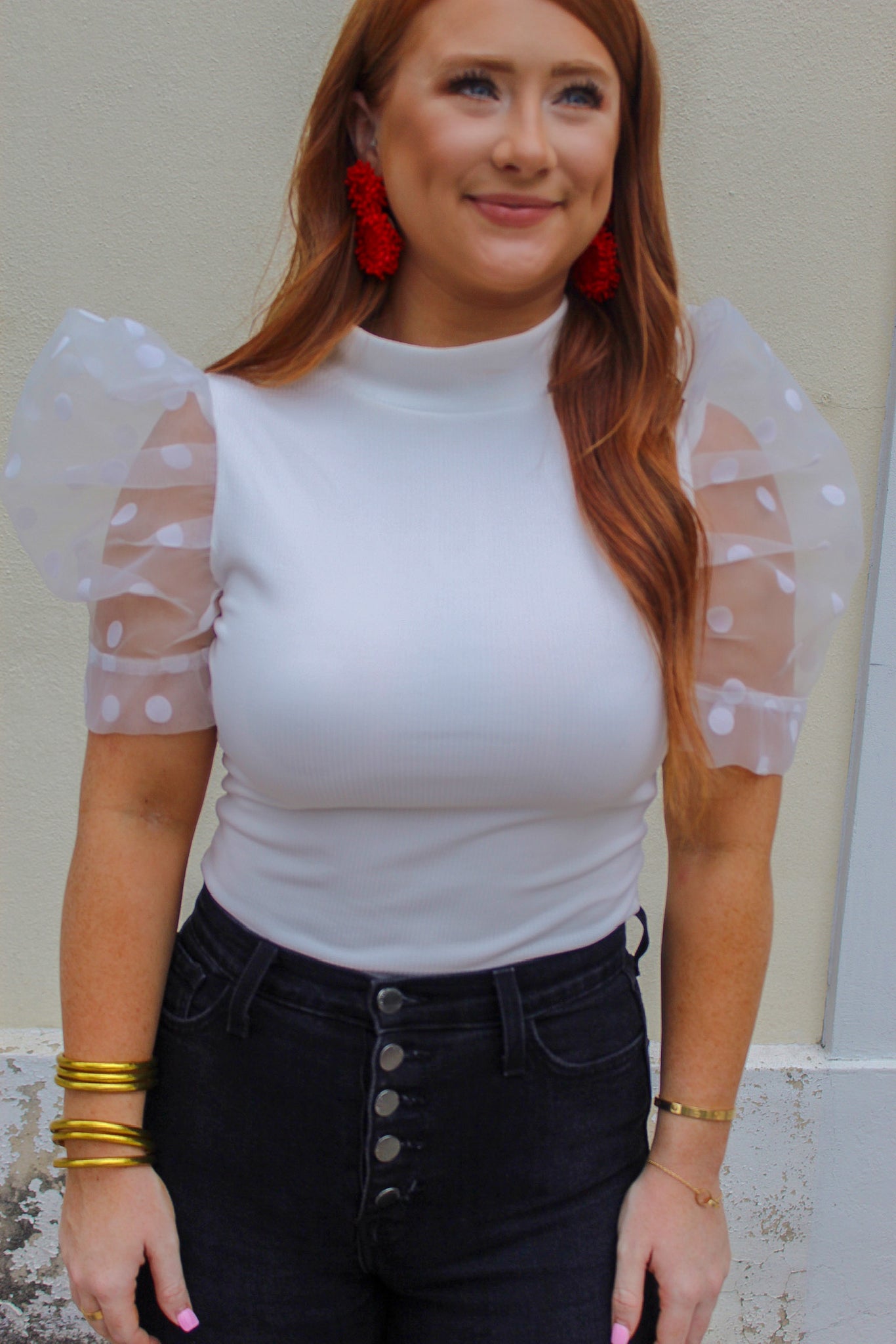 Kelaya Puff Sleeve Polka Dot Bodysuit- White