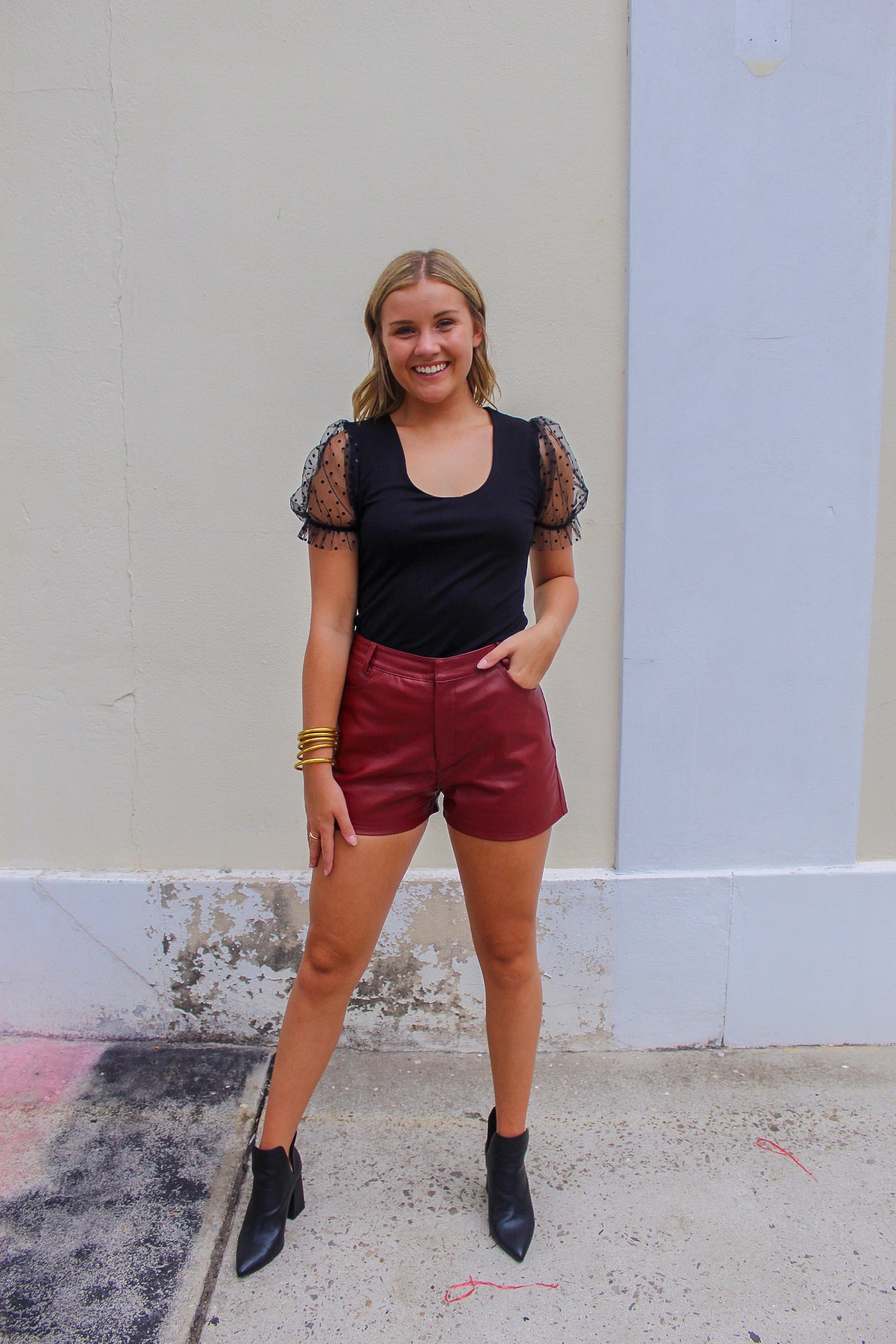 Lyndon Scoop Neck Mesh Puff Sleeve Top- Black