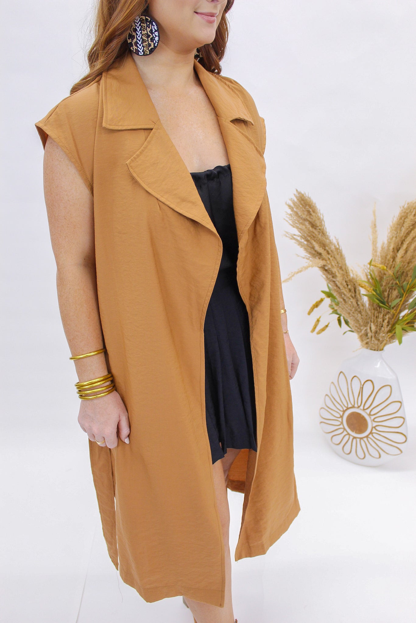 Aspen Belted Long Vest- Camel