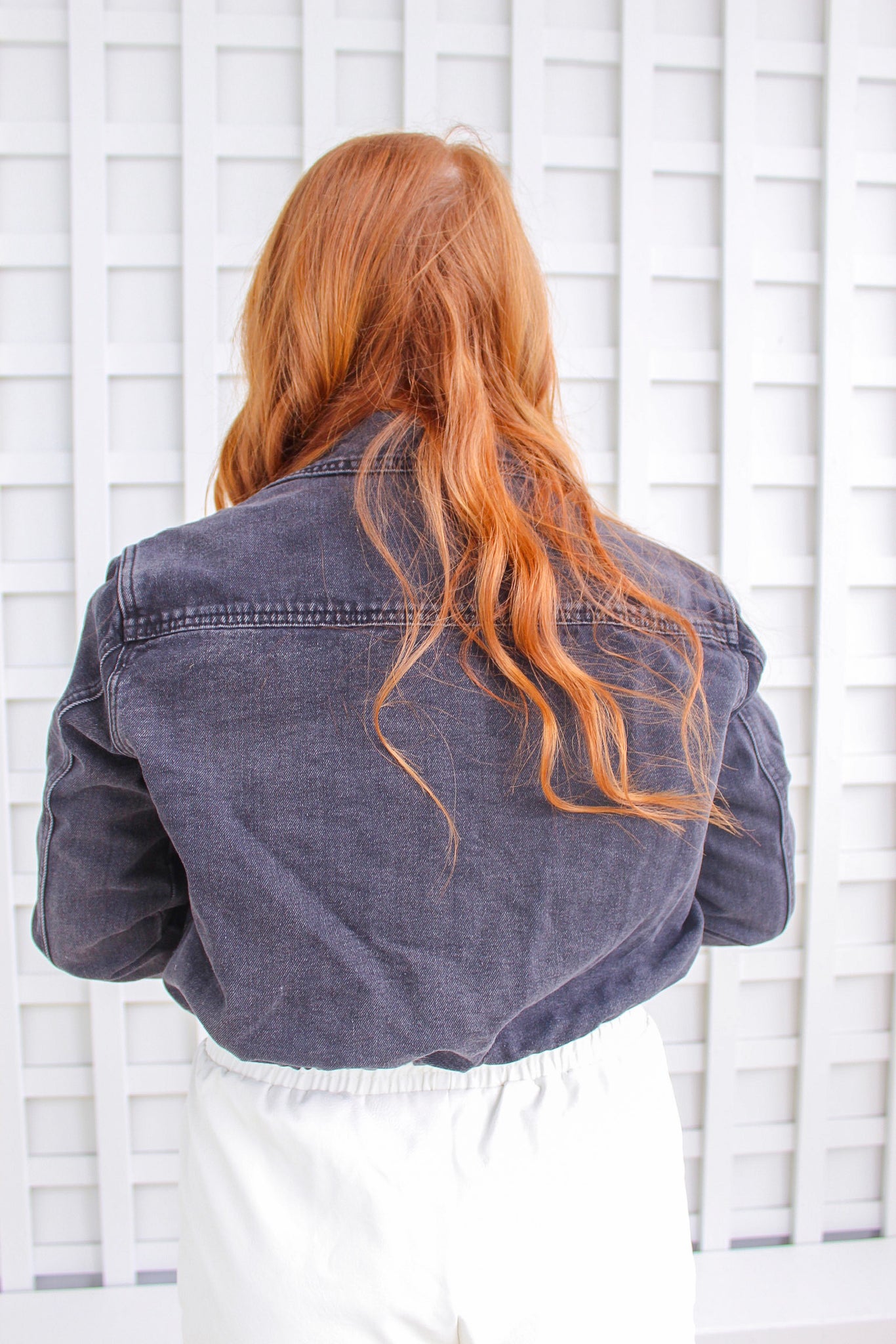 Aubrey Drawstring Crop Denim Jacket- Charcoal Grey