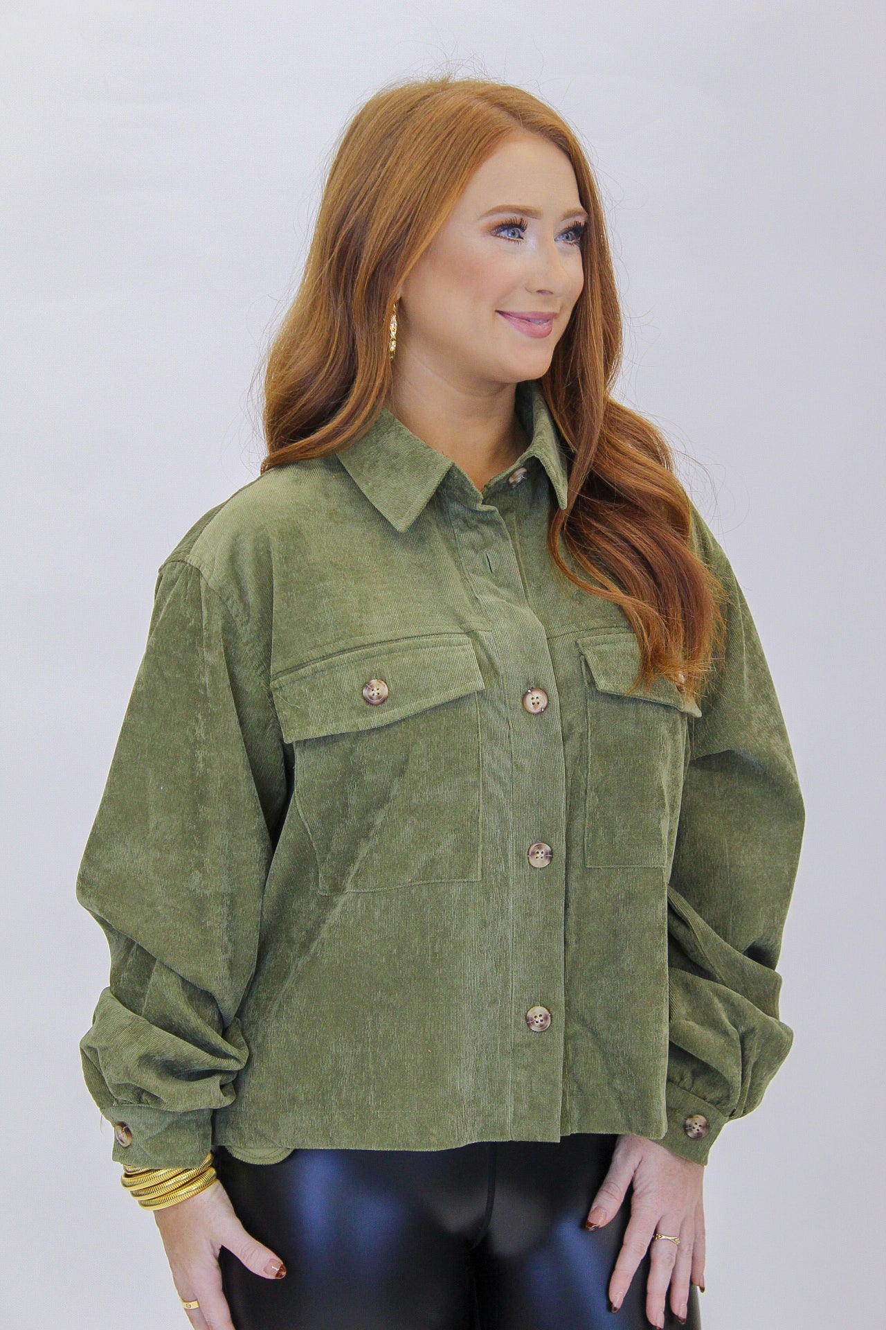 Chill Out Corduroy Button Down Jacket- Olive