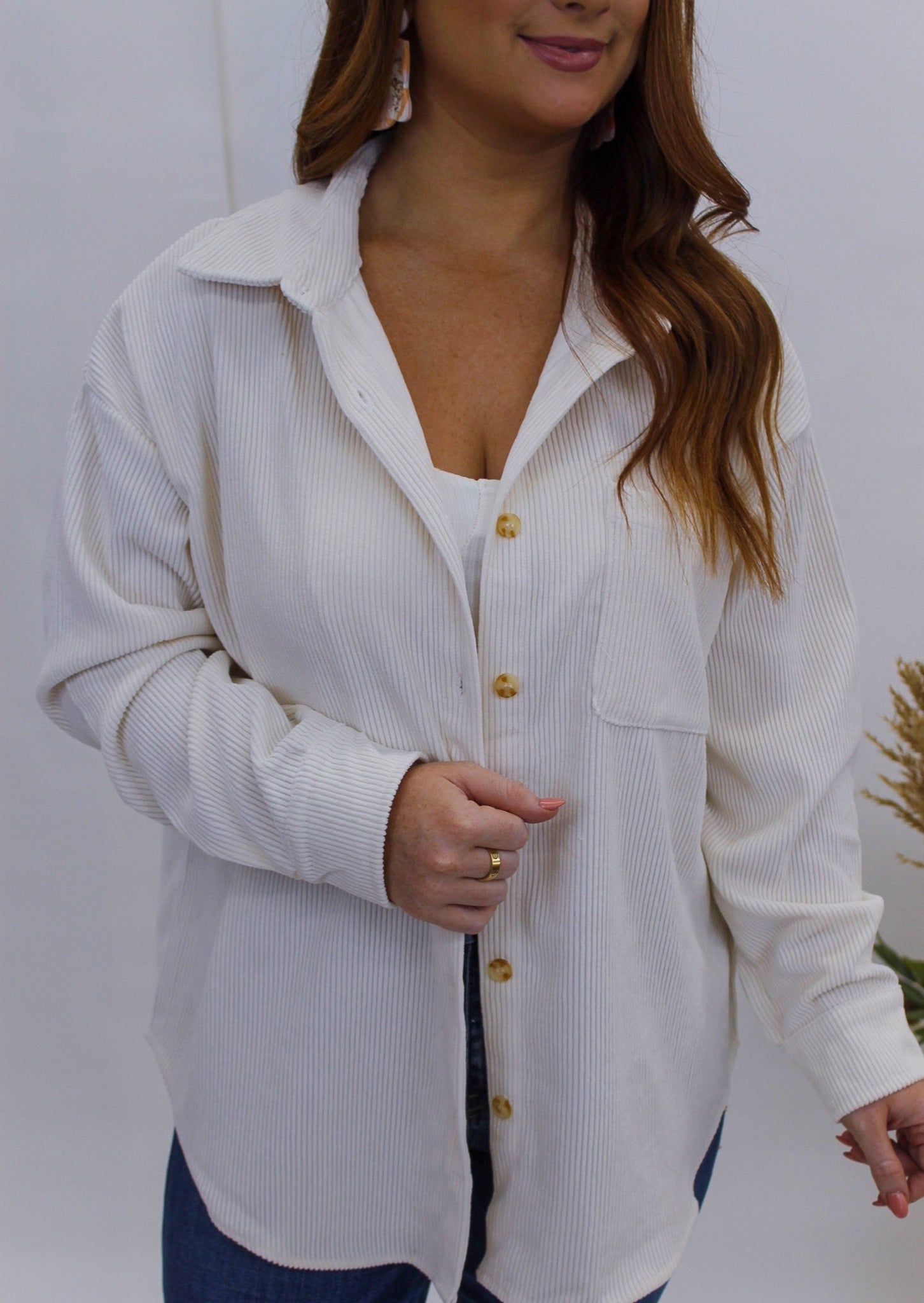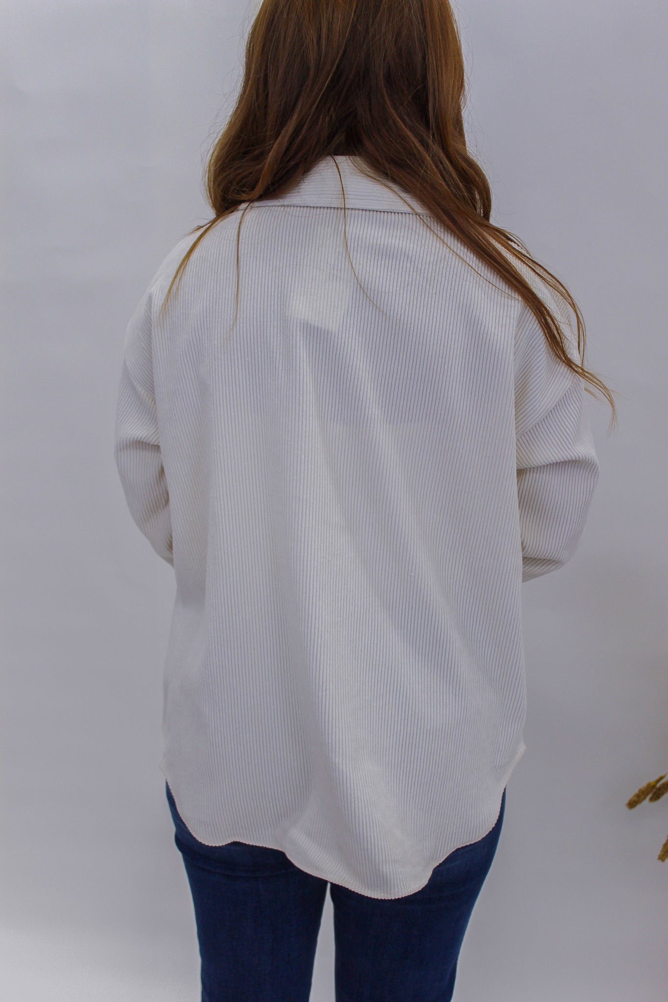 Fate Corduroy Button Up Shacket- Ivory