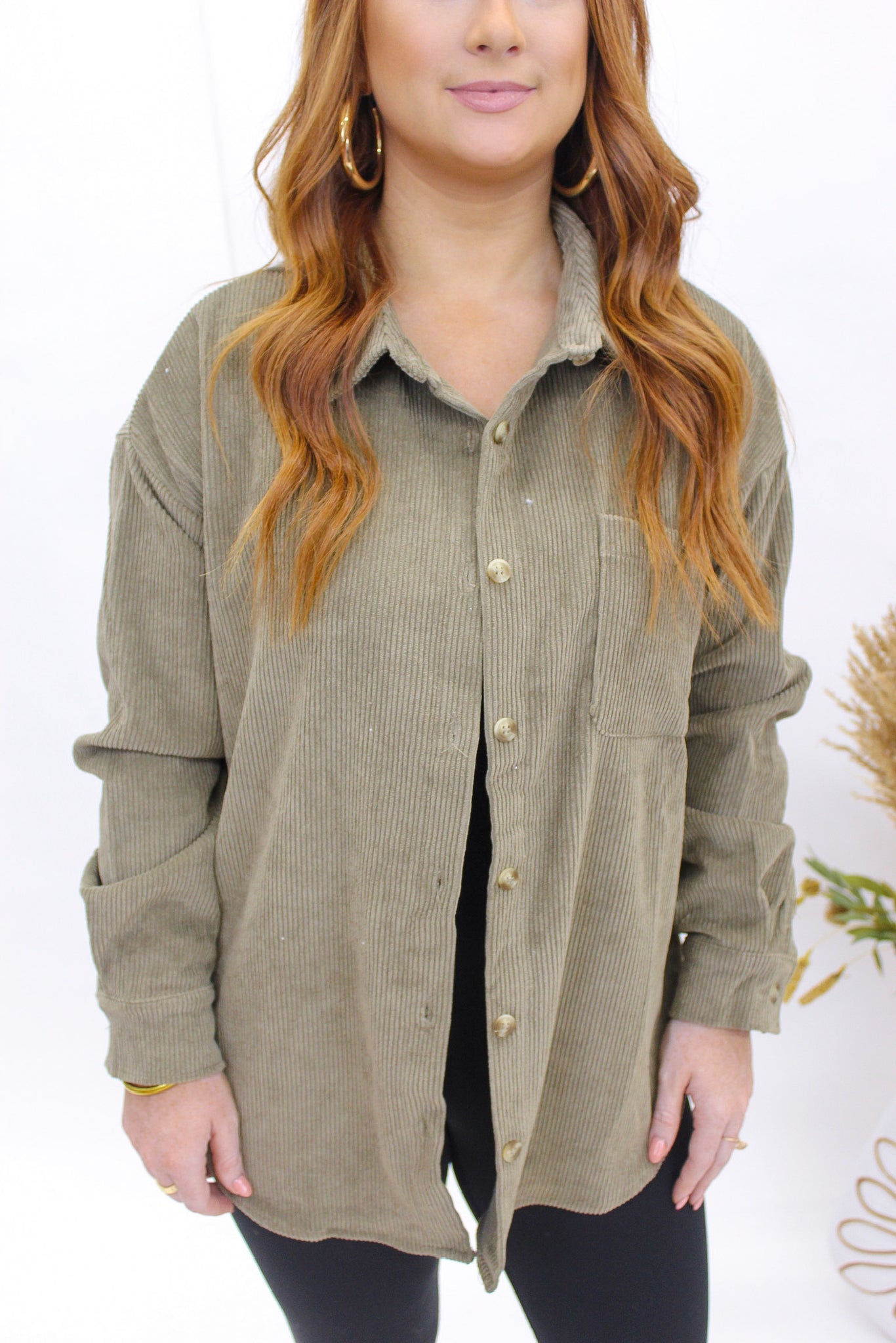 • Load image into Gallery viewer, Fate Corduroy Button Up Shacket- Olive