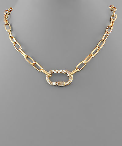 Paved Crystal Caribiner Necklace