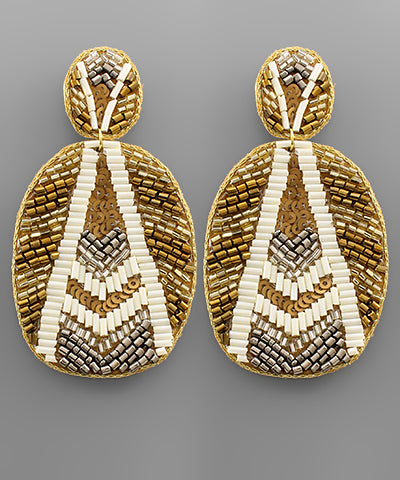 • Load image into Gallery viewer, Chevron Pattern Beaded Oval Earrings