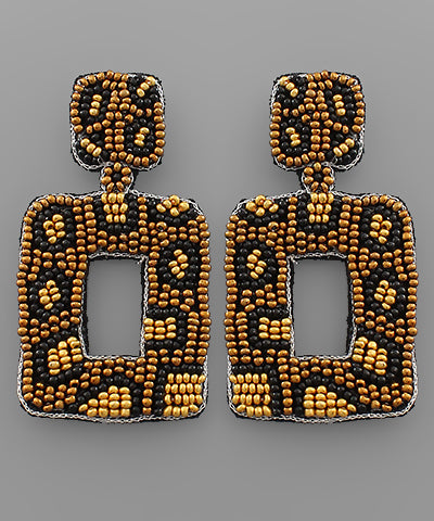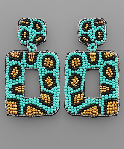 • Load image into Gallery viewer, Leopard Bead Rectangle Earrings