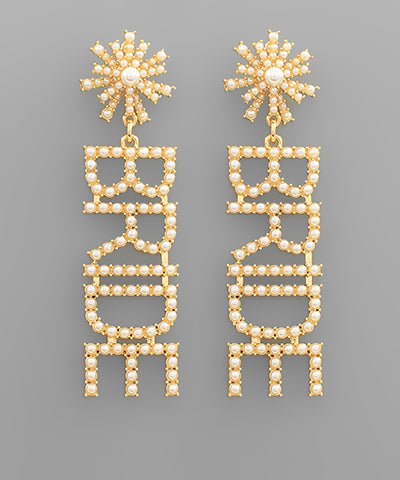 • Load image into Gallery viewer, Pave BRIDE Letter Drop Earrings