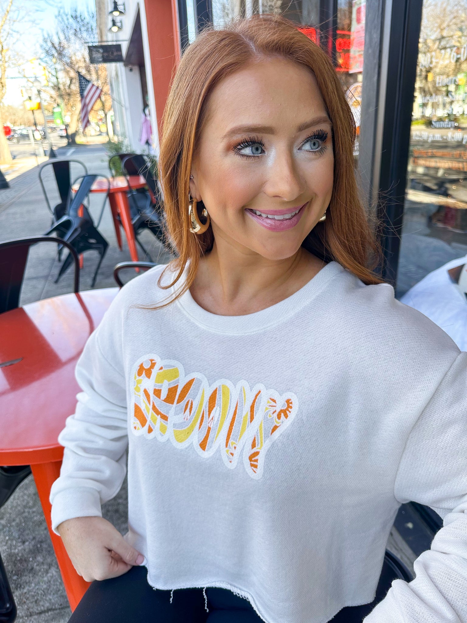 Lounge around in our “Groovy” graphic top! Will also be a cute bathing suit cover up when it warms up!