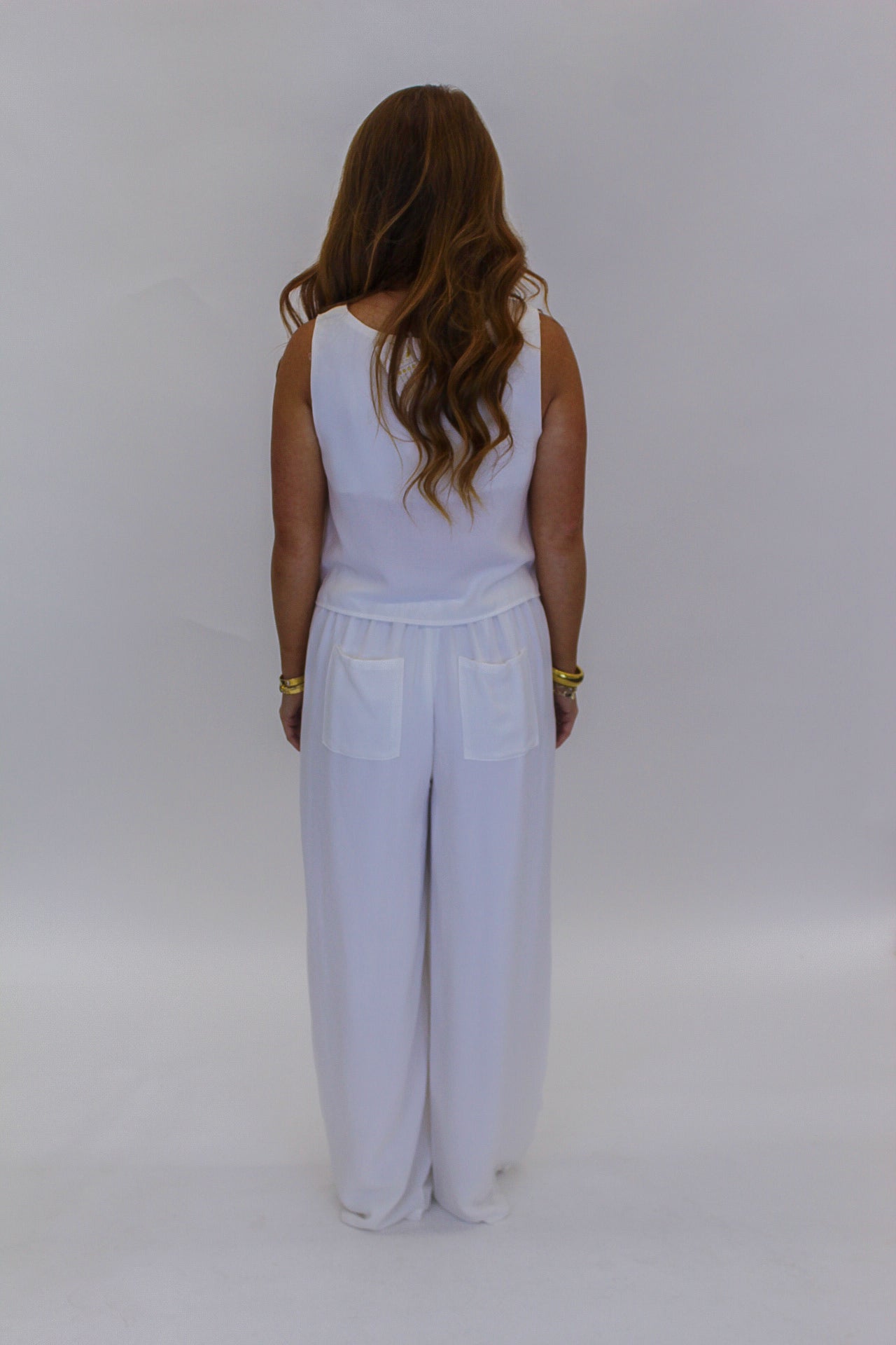- Pants: High Waisted, Elastic Waist, Wide Leg