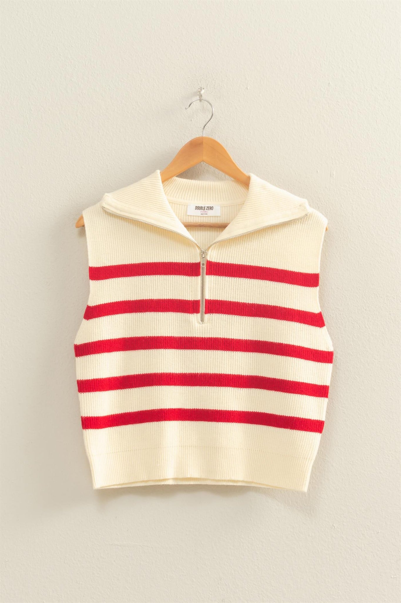 The Carrie Striped Sweater Top in red offers a refined yet effortless look, perfect for pairing with jeans. Its casual fit ensures comfort throughout any season, making it a versatile addition to your wardrobe. Elevate everyday style with this timeless piece that balances simplicity and sophistication.