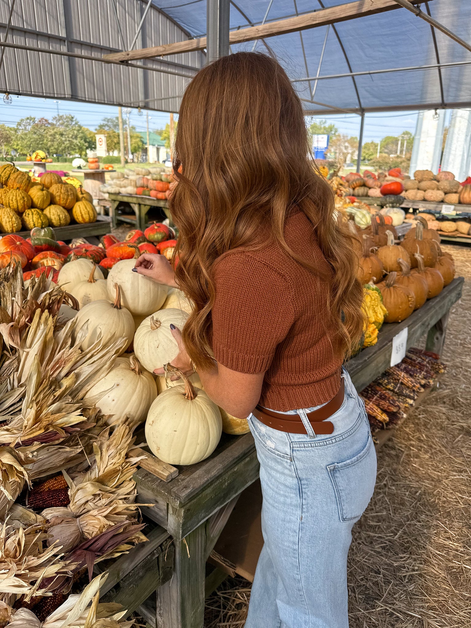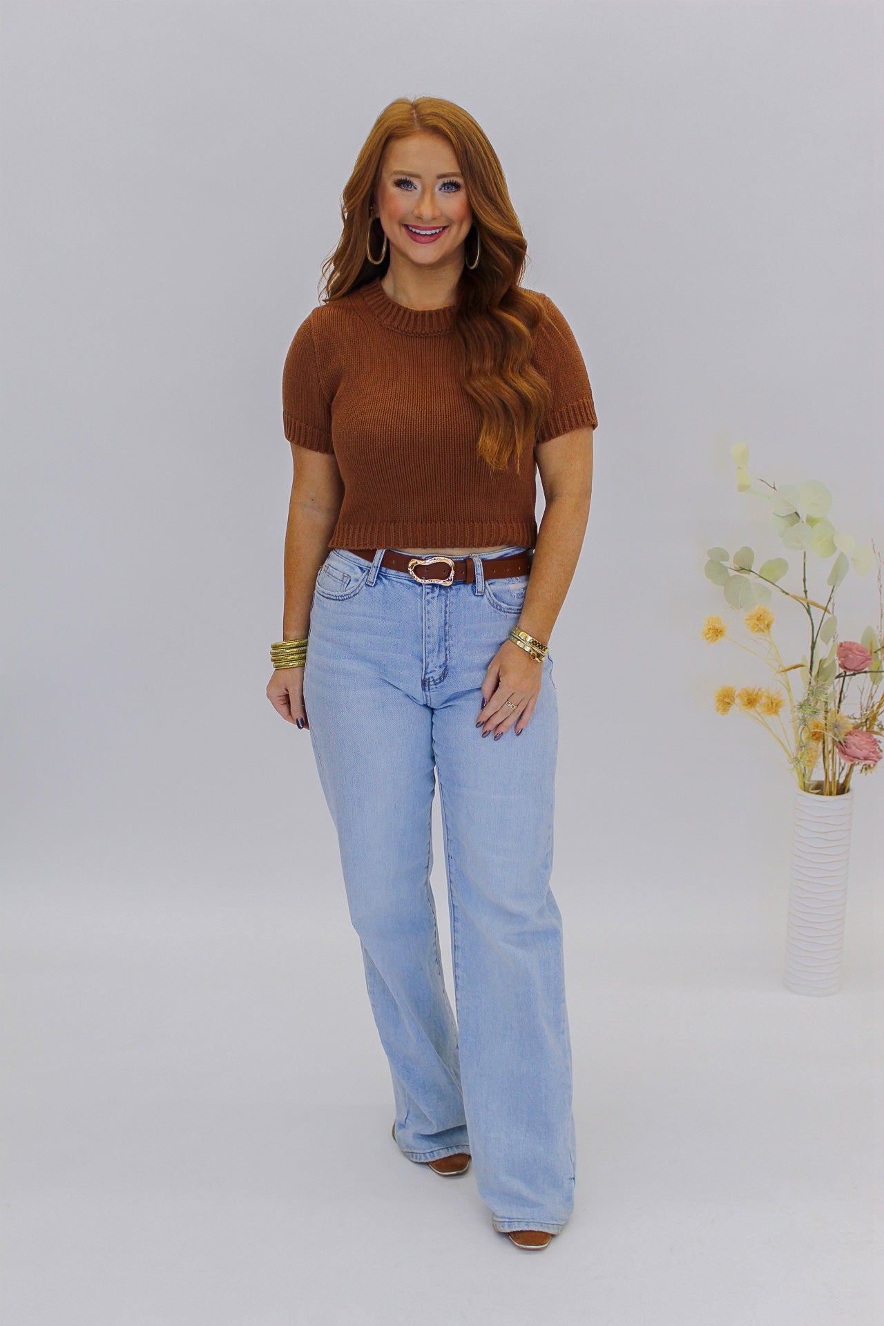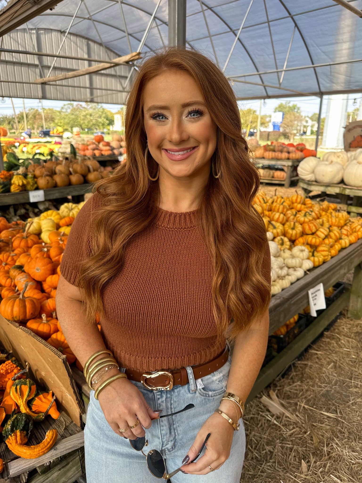 Introducing our Dawson Knit Top in a deep shade of brown. This essential fall top features a round neck and pairs perfectly with both jeans and leather bottoms for a versatile and timeless look. A true classic, this top is an investment piece that will remain a staple in your closet for years to come.