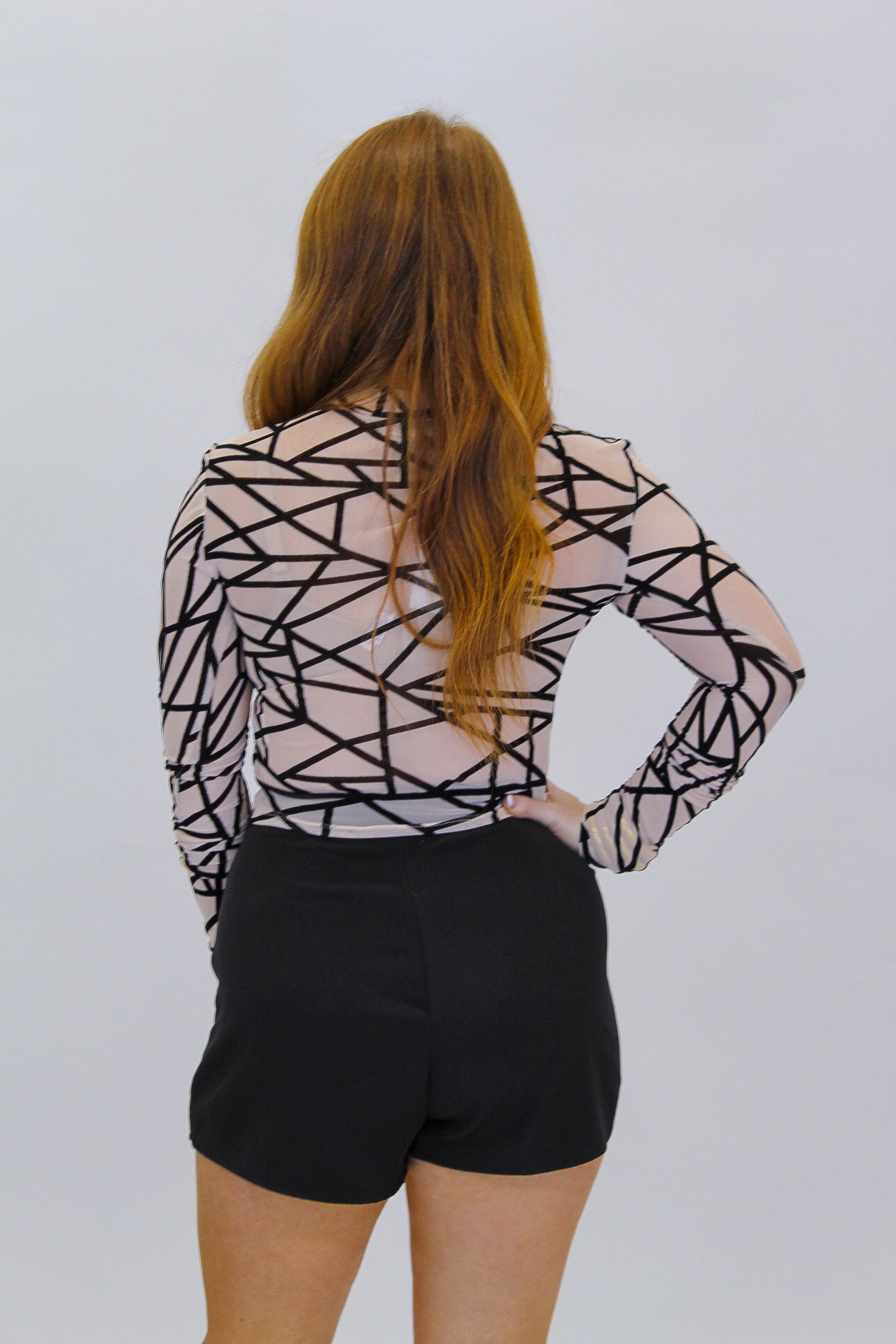 We are loving this abstract top for any night out! Wear by items or pair underneath any of your strapless or short sleeve tops for such an edgy look!