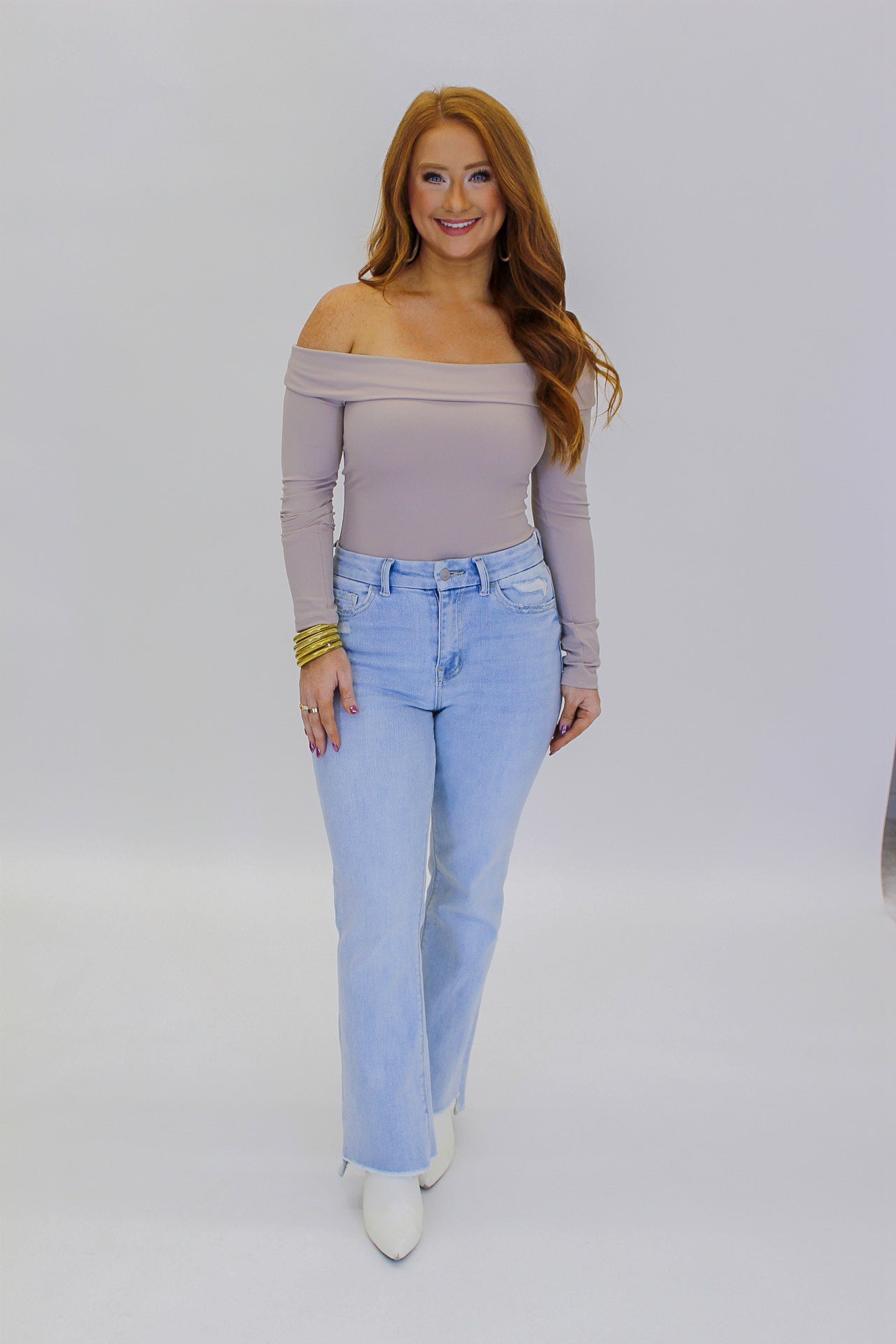 Introducing the Dylan Off Shoulder Bodysuit, a timeless piece that effortlessly pairs with jeans, skirts, or shorts. Perfect for a night out, this bodysuit exudes elegance and sophistication. Crafted in luxurious taupe fabric, it adds a touch of exclusive style to any look. Elevate your wardrobe with this must-have top.