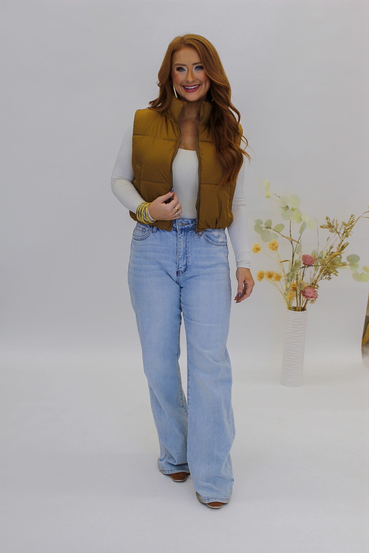 Elevate your style with our Instant Confidence Cropped Puffer Vest in luxurious brown. This must-have piece will keep you cozy and chic when you pair it with an underneath top and leggings. Embrace the art of layering and exude elegance with this exclusive vest.