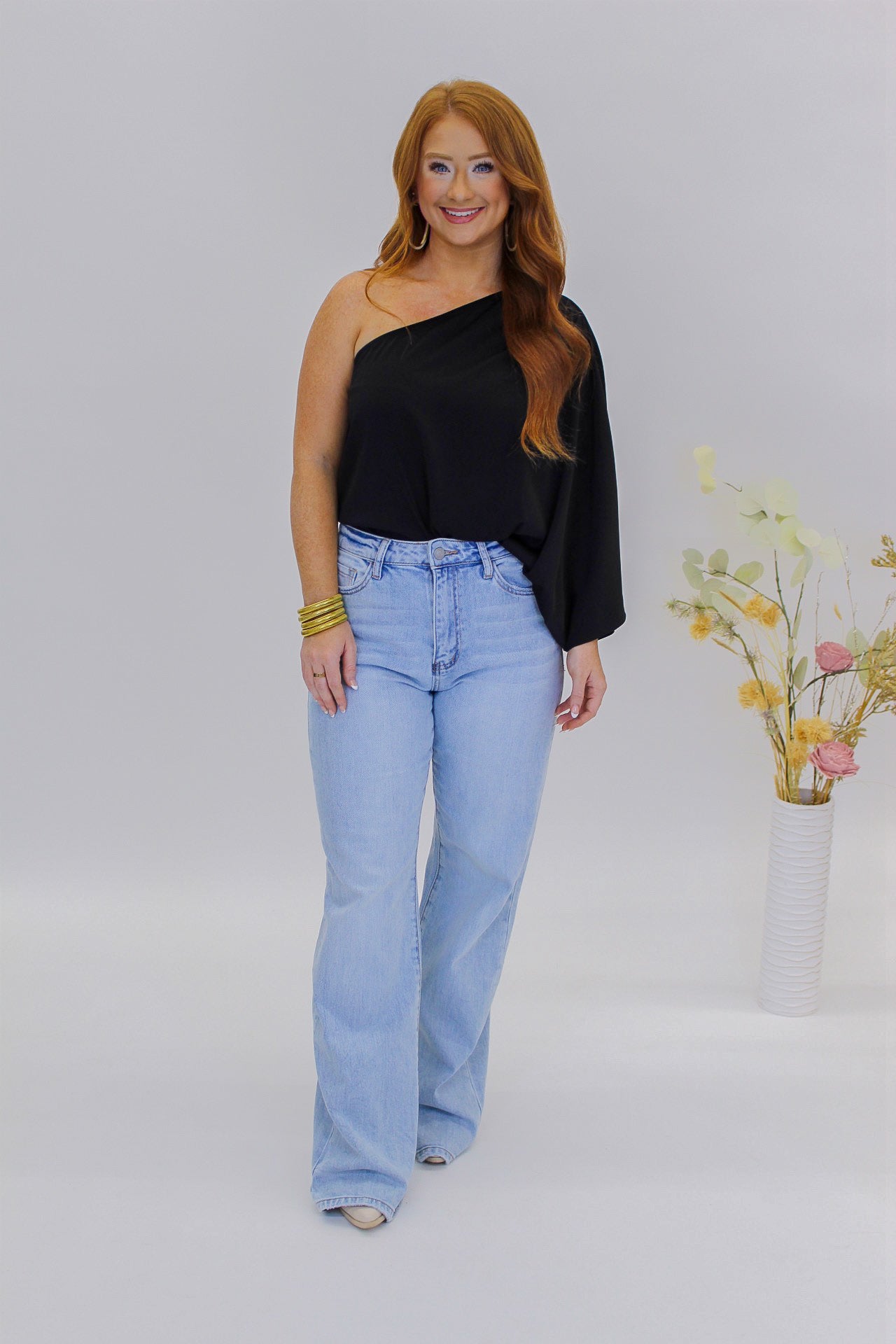 Longtime One Shoulder Blouse- Black