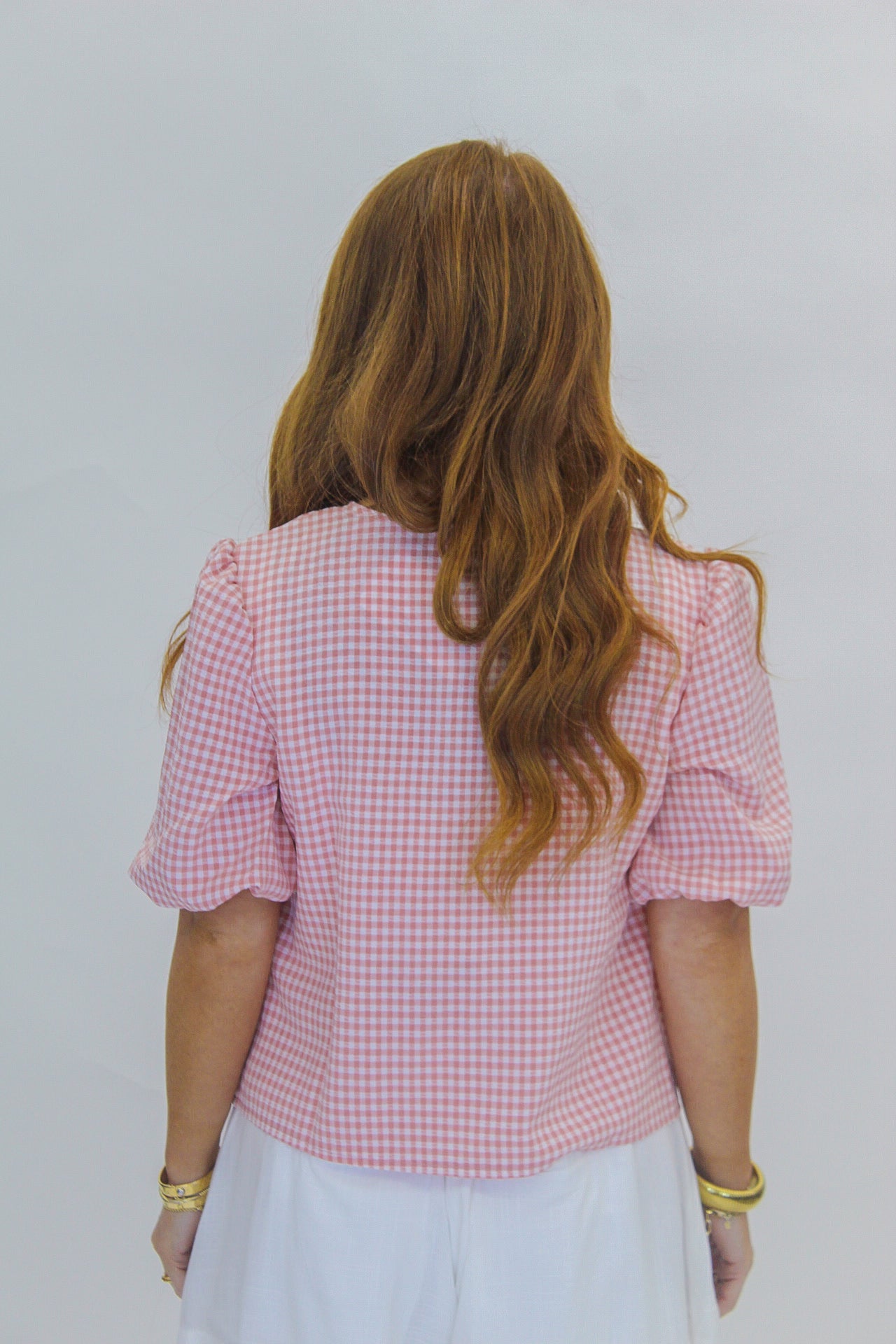 Effortlessly elegant, the Mal Gingham Bow Tie Puff Sleeve Blouse in Pink is a must-have for any fashion-forward wardrobe. Featuring darling bow tie details and statement puff sleeves, this top can be paired with any bottoms for a sophisticated and stylish everyday look. Elevate your style with this timeless piece.