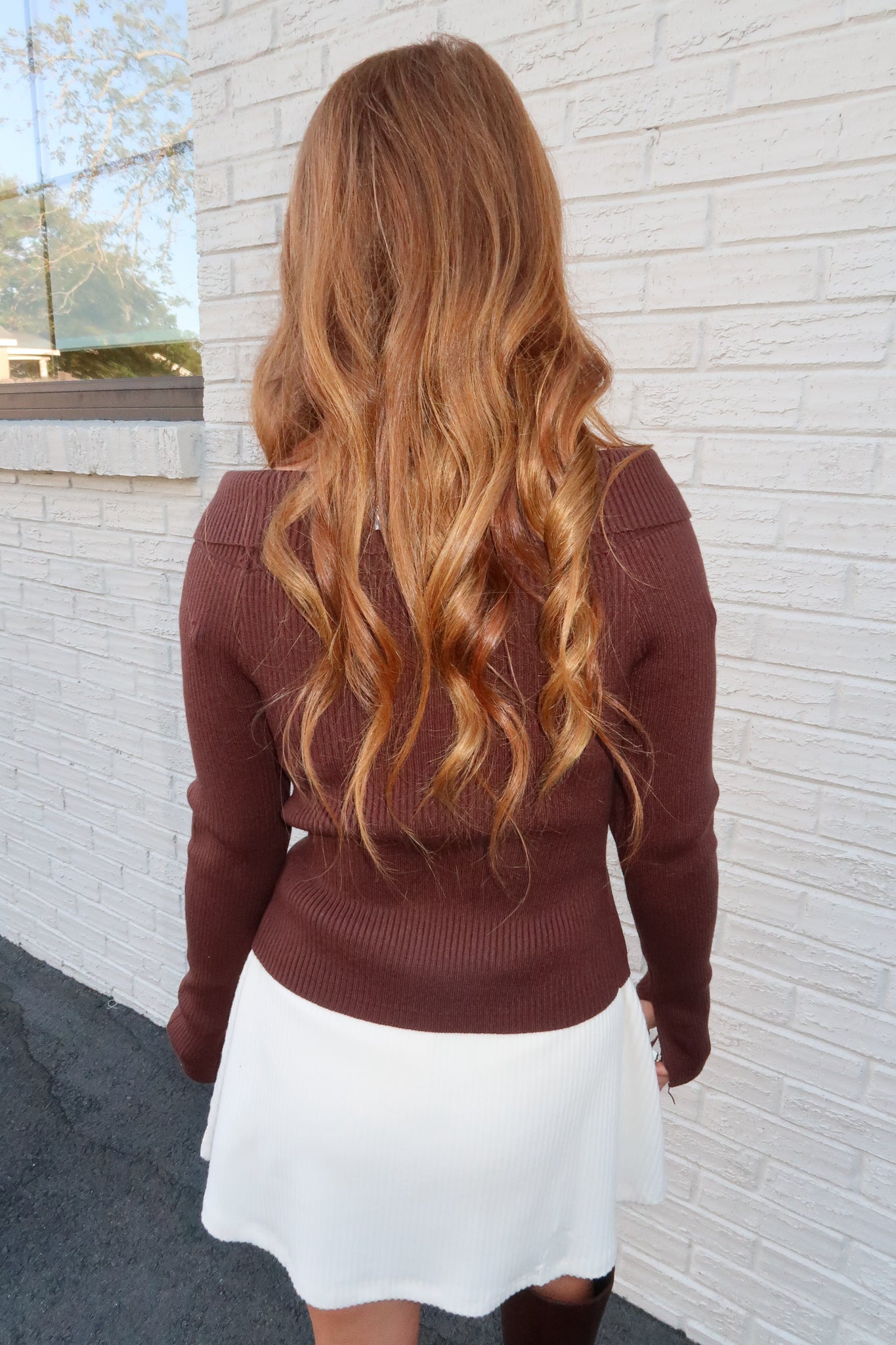 The Marcus Off Shoulder Knit Sweater in rich brown offers a sophisticated look perfect for fall. Its elegant off-shoulder style and knit detailing make it versatile for pairing with jeans, skirts, or shorts. Ideal for evening dinners, it complements boots effortlessly to complete a refined and polished outfit.