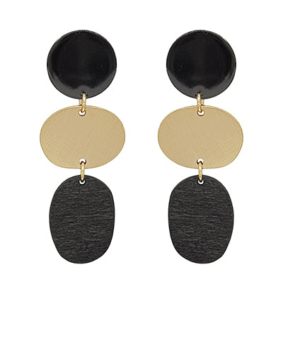 Acetate & Metal & Wood 3 DropEarrings