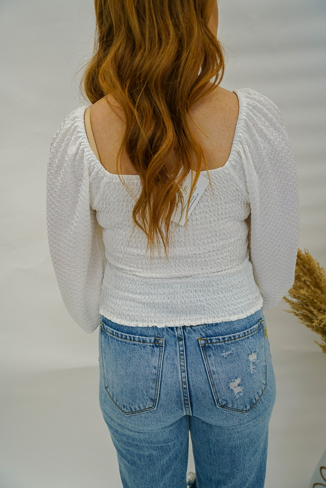 • Load image into Gallery viewer, Adore You Smocked Blouse- White