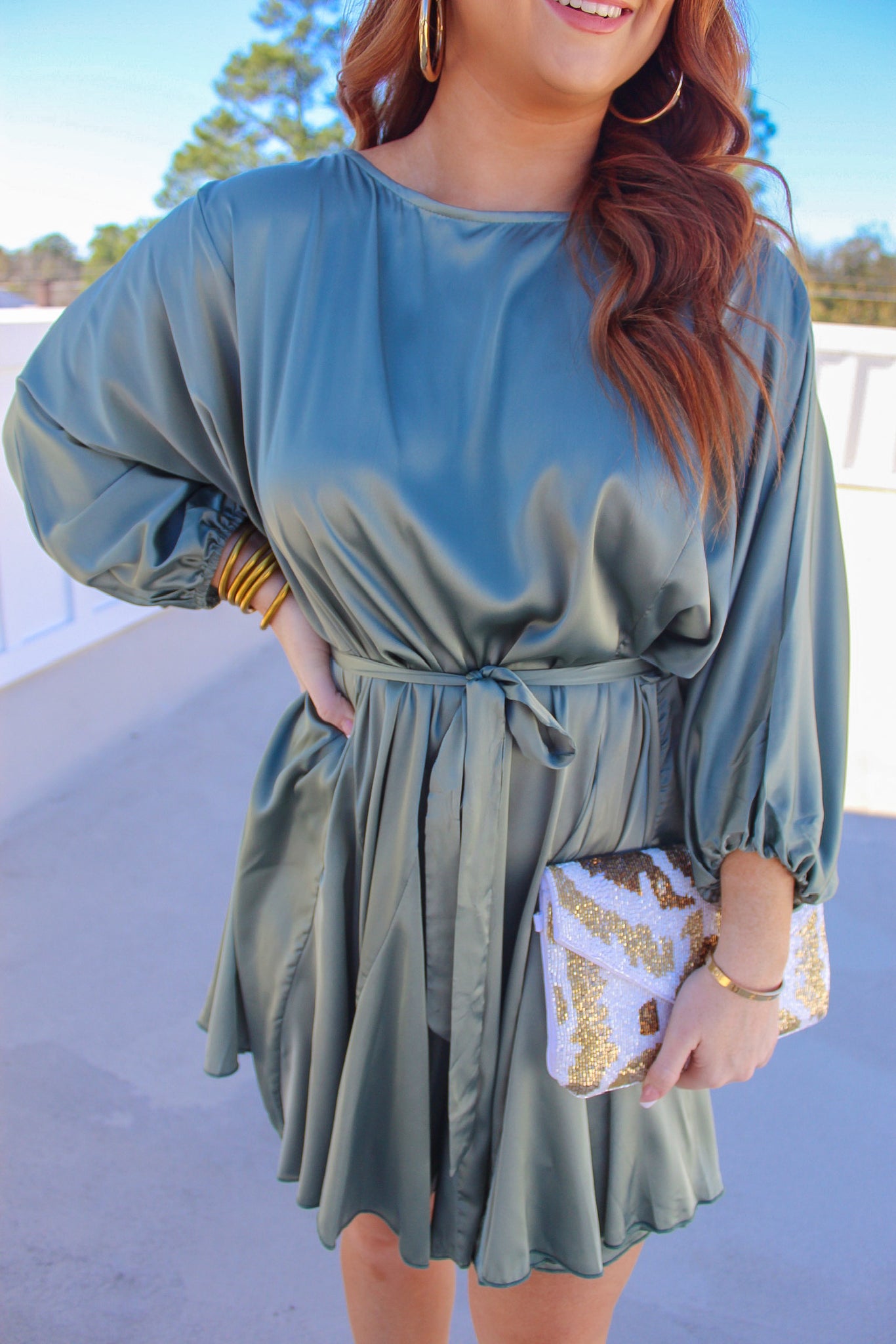 Alissa Satin Dress- Sage