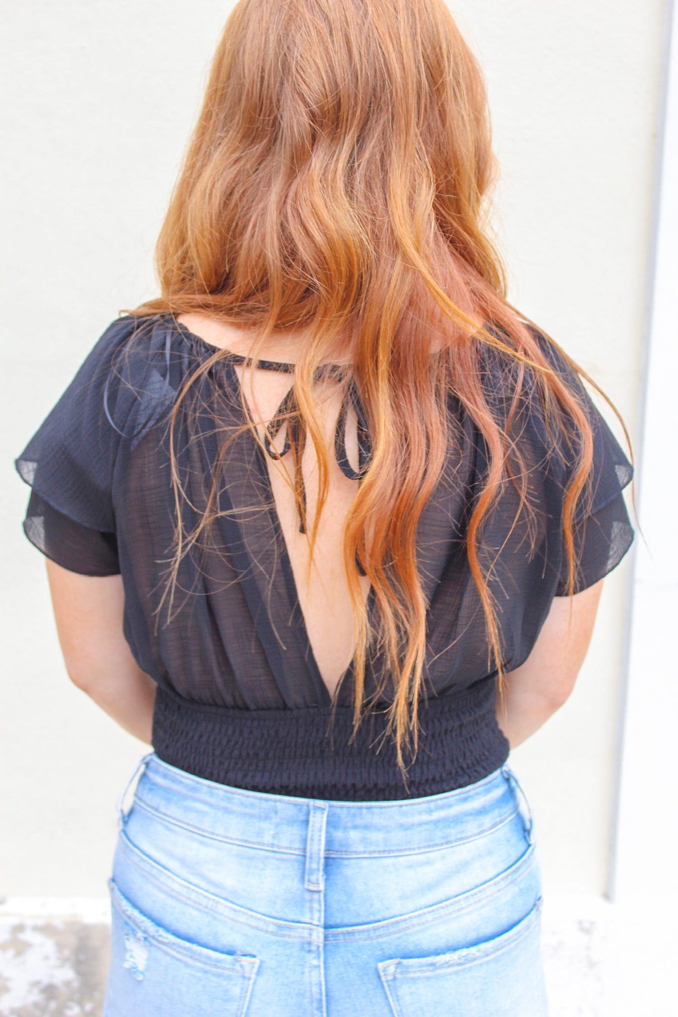 Leave them all stunned in this deep v neck crop top! Pair with your favorite denim!