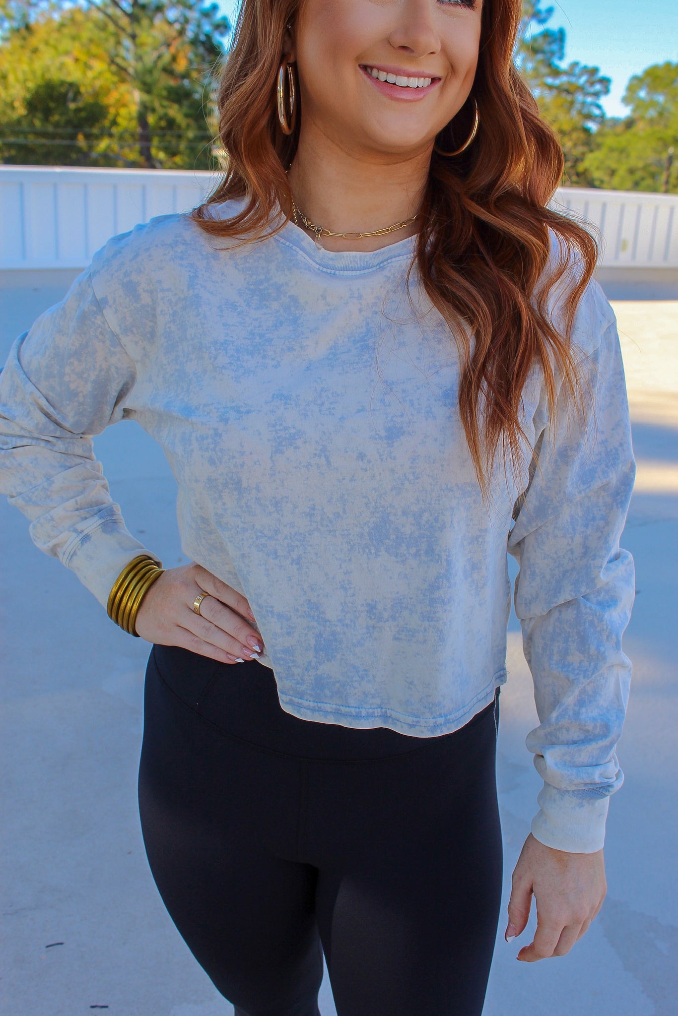 Ameila Acid Wash Crop- Smoke Blue