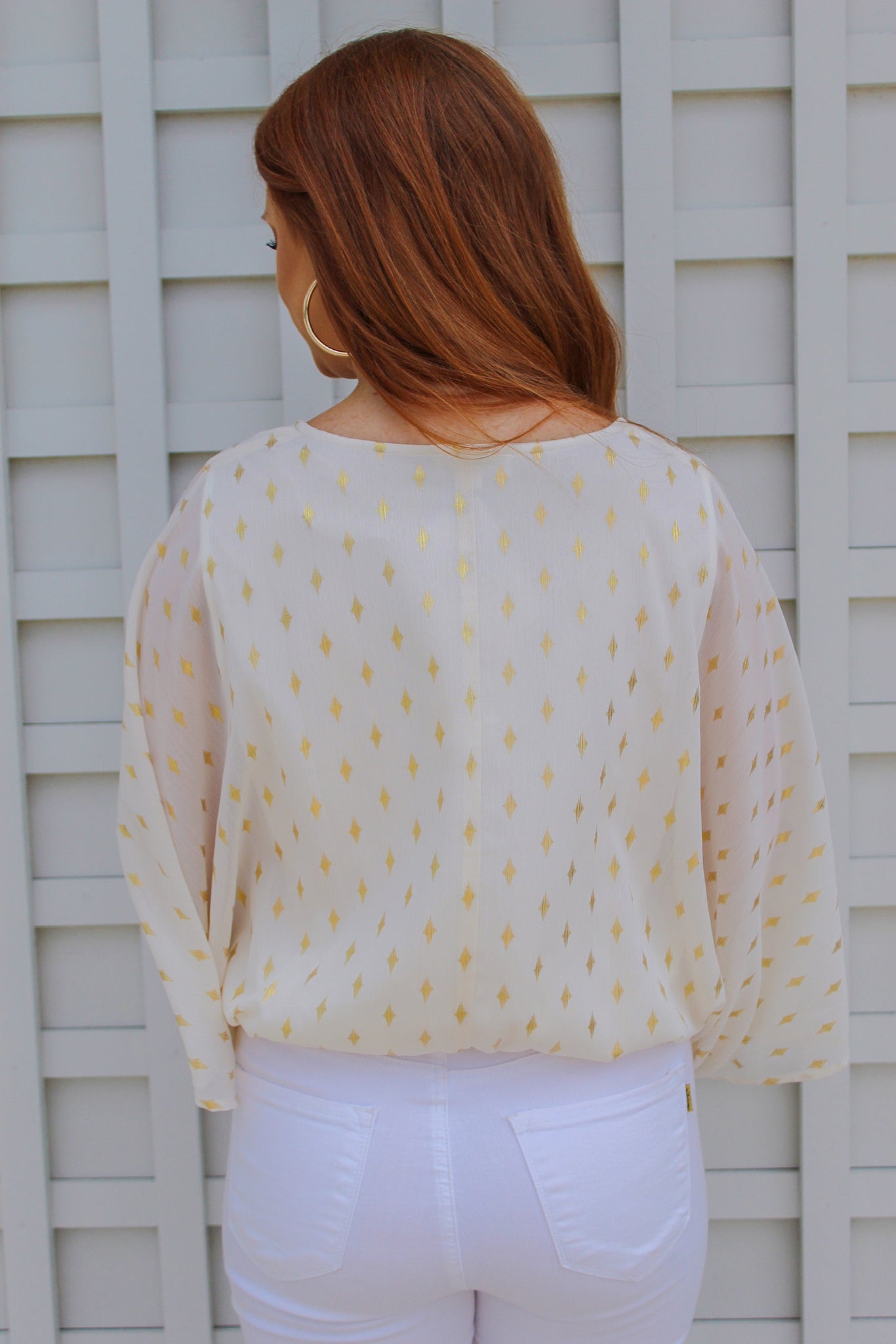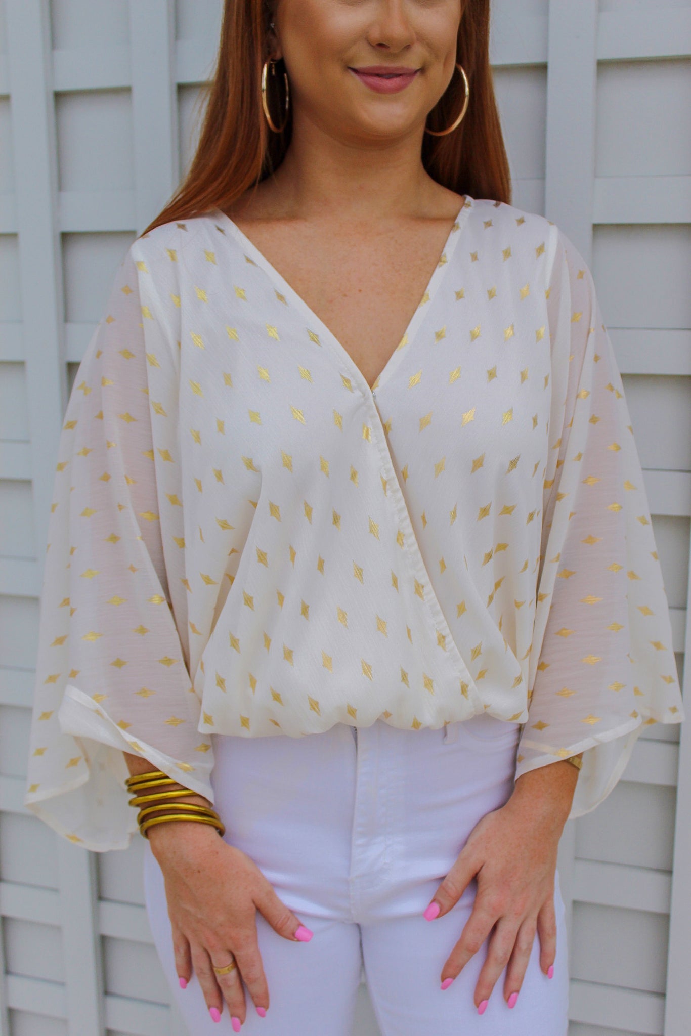 Ann Surplice Gold Dimond Bodysuit- Off White