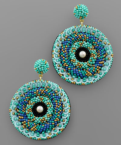 Beaded Disc & Pearl Earrings
