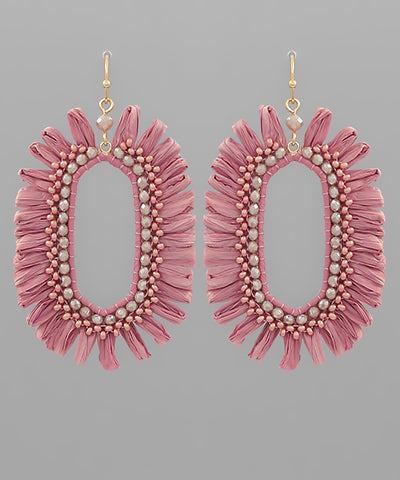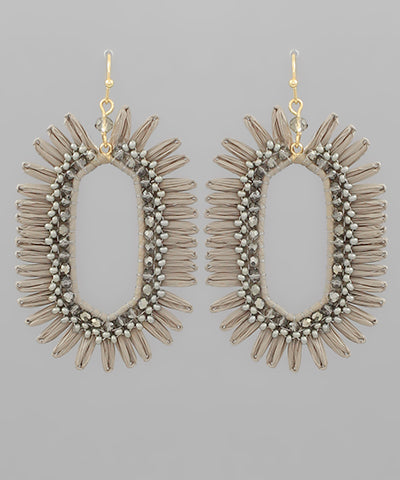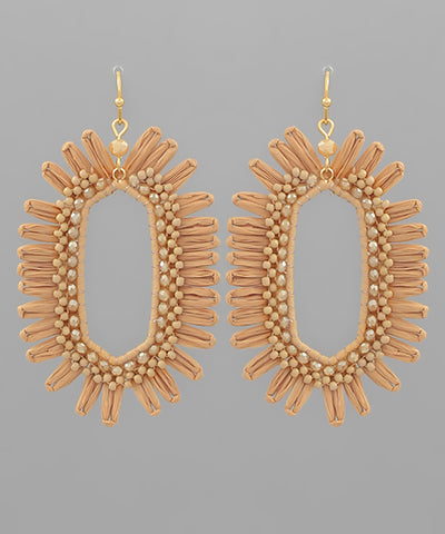 Beads & Hexagon Shape Raffia Earrings