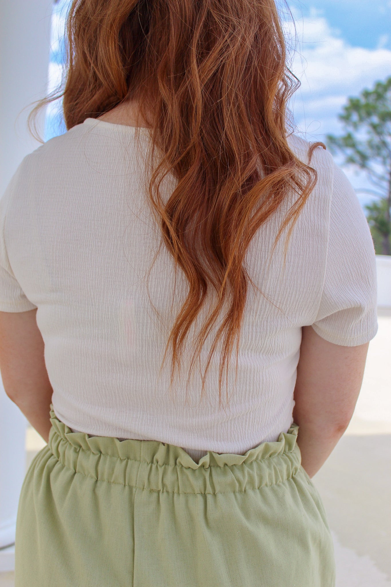Better Days Short Sleeve Ruched Top- Cream