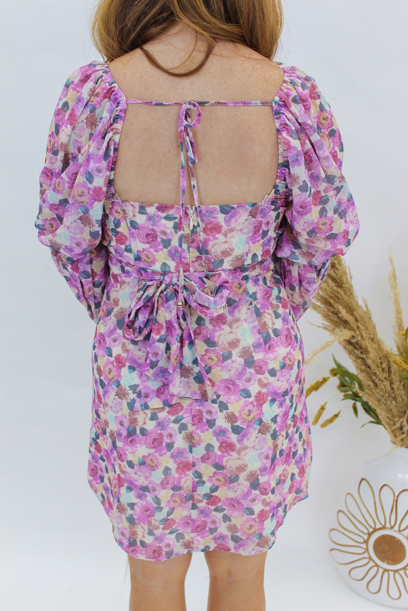 Cosmos Floral Mini Dress- Lavender