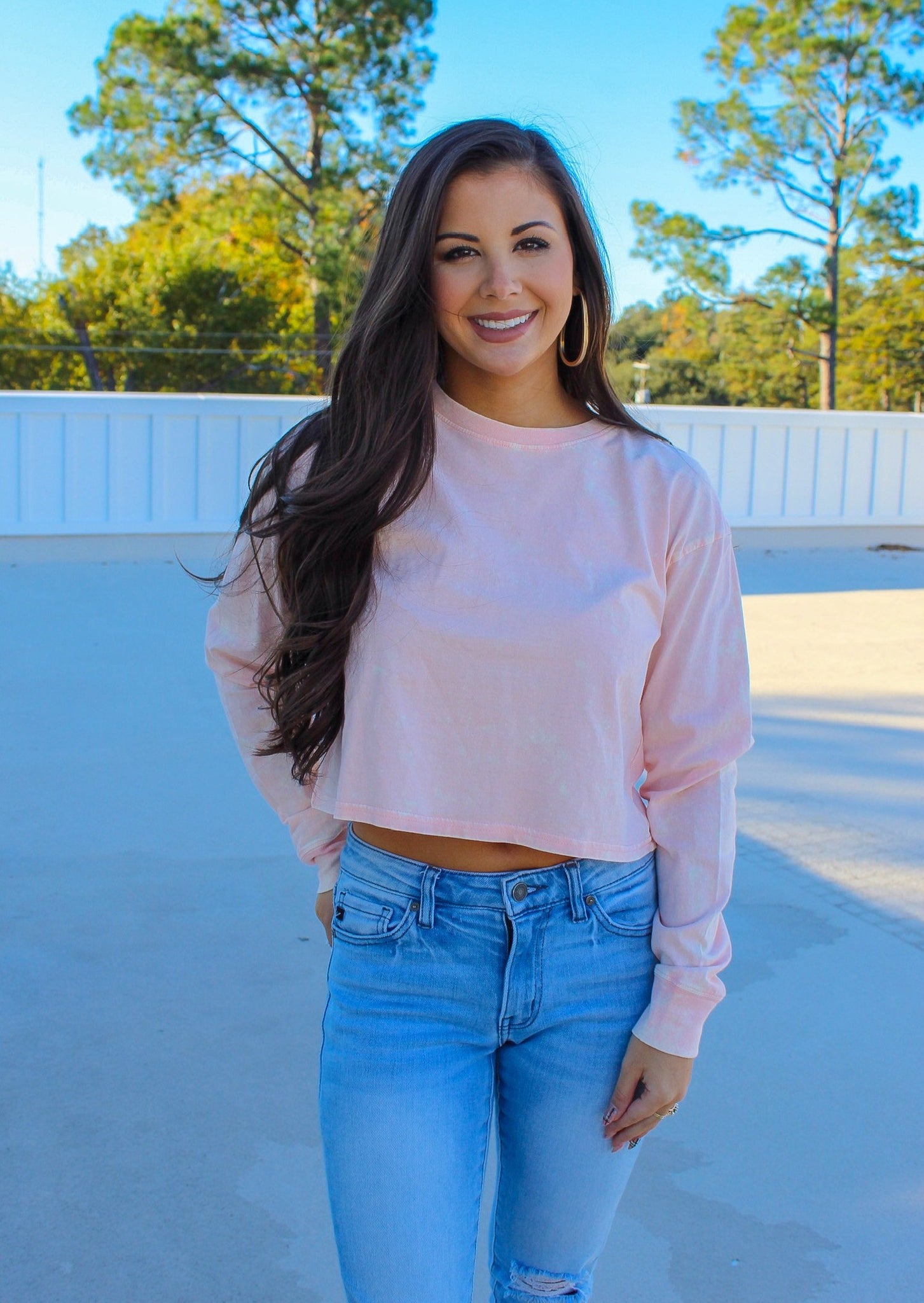 Dana Crew Neck Long Sleeve Crop- Pale Pink
