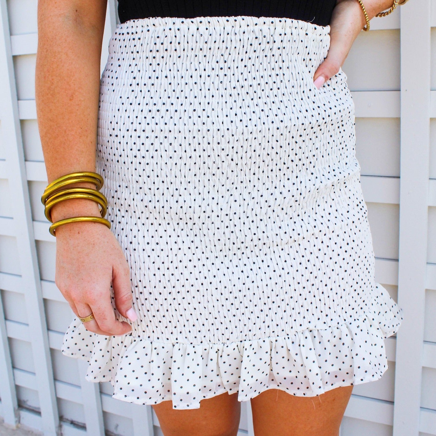 Emilee Polka Dot Smocked Mini Skirt- Off White
