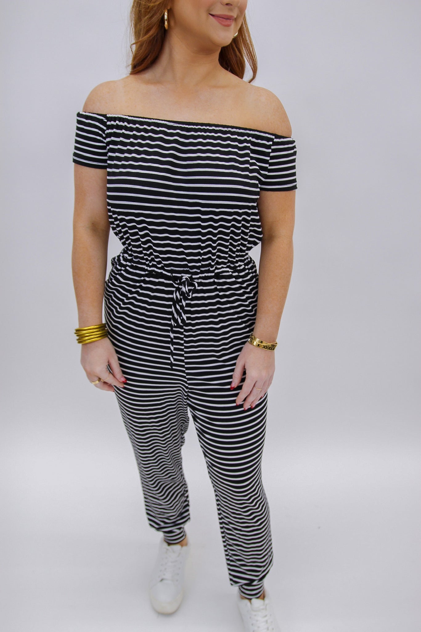 This striped jumpsuit is so comfy! Great to run errands in or to lounge around the house in!