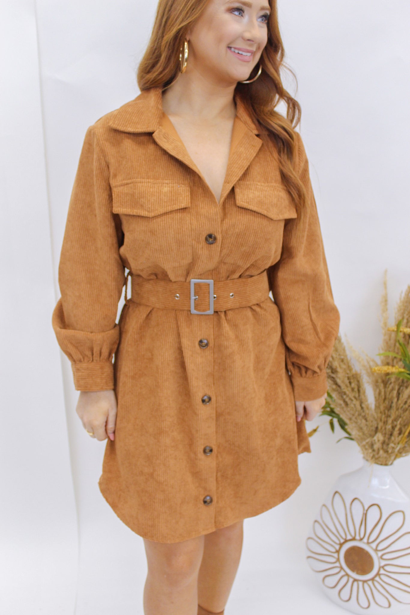 Fall Night Corduroy Dress- Camel